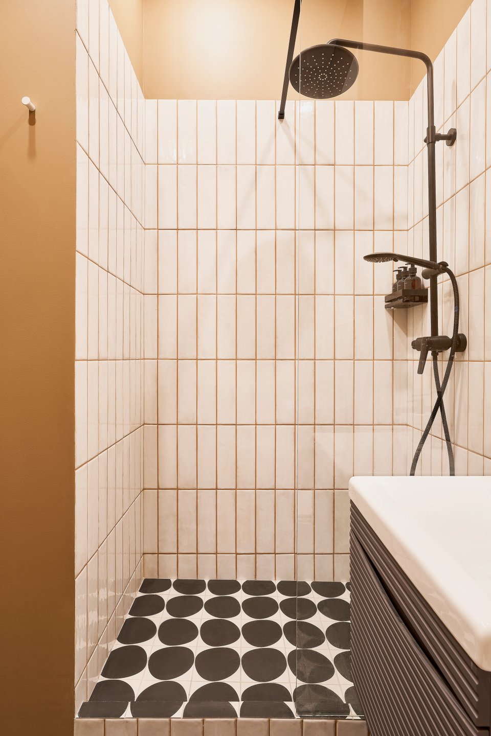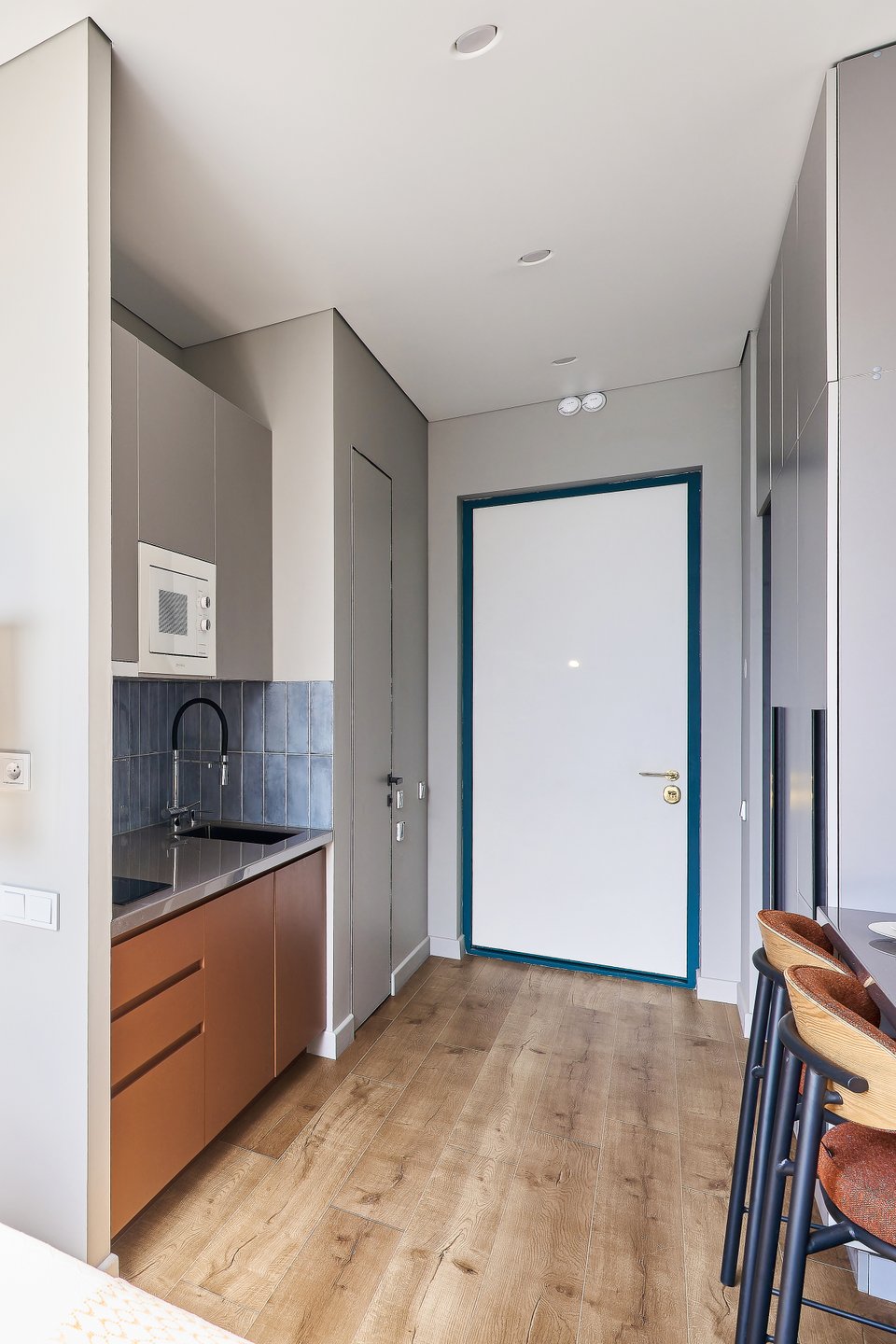 «Студия готовилась к сдаче в долгосрочную аренду. Будущие жильцы — молодой человек или пара без детей, вовлеченные в карьеру. Им важно жить рядом с “Москвой-Сити” для быстрого доступа к работе. Их дом — спокойное место для восстановления, с ярким, но сдержанным интерьером», — рассказывает дизайнер.