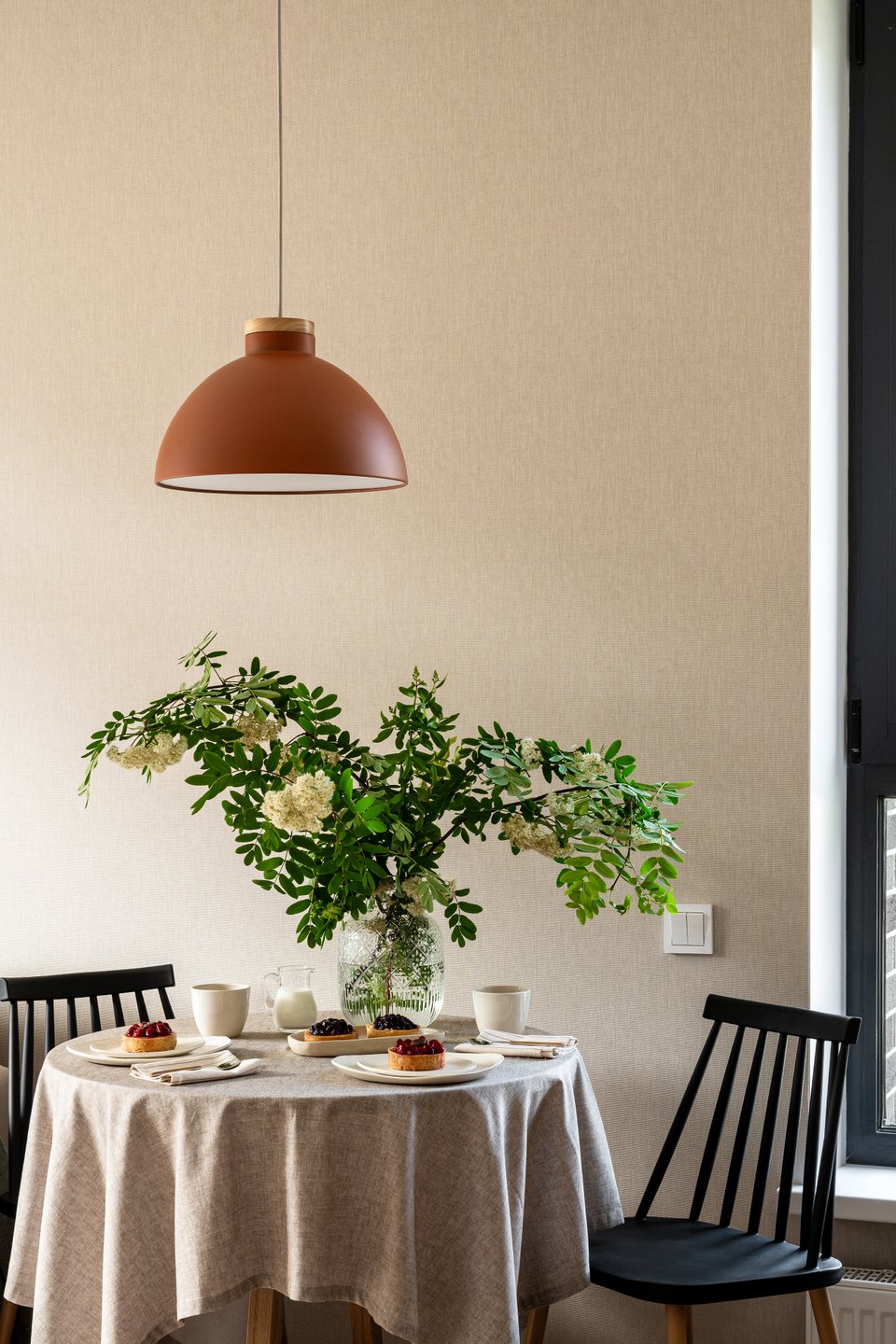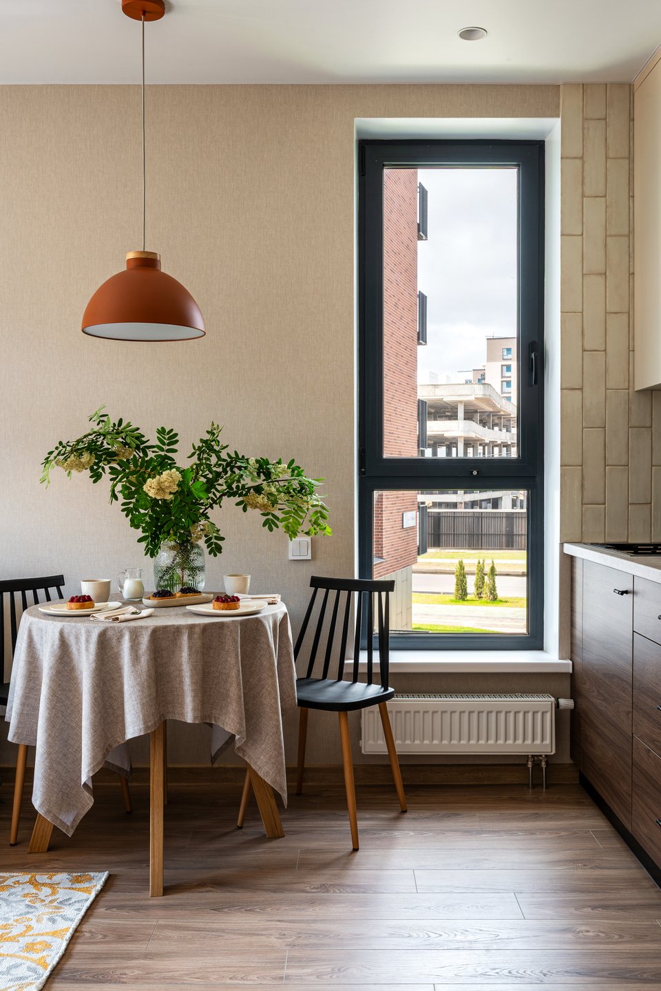 Обеденную группу — кухонный стол Крит, пару стульев Элвуд и даже акцентный светильник Малинг — заказали на divan.by (локальный предствитель бренда divan.ru в Республике Беларусь).