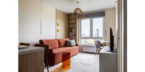 «Студия в престижном ЖК была приобретена заказчиком под сдачу в аренду. Интерьер решили сделать спокойным, базовым, но придать ему характера и яркости за счет деталей. Задача — сделать так, чтобы было удобно и комфортно жить. А еще — чтобы было радостно возвращаться после рабочего дня. Это про создание у жильцов ощущения своего дома, а не просто места, где они ночуют, а утром бегут на работу», — рассказывает дизайнер.