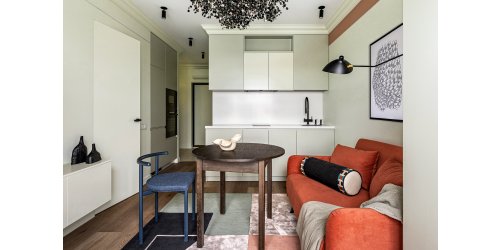 «Окна квартиры выходят на северо-запад, естественного света здесь недостаточно, — рассказывают дизайнеры. — Поэтому в качестве базы мы выбрали мягкие бежевые и молочные оттенки. Графичные акценты оживляют современный монохром и добавляют динамики. Элементы графики присутствуют в ковре, картине, черных акцентах мебели. В интерьере активно используется дерево — деревянные панели хорошо сочетаются с зеркалами, которые визуально расширяют пространство. За настроение отвечают текстиль и декор в азиатском стиле. Такое пространство способно адаптироваться к настроению жильцов, при этом долго оставаясь актуальным и современным».