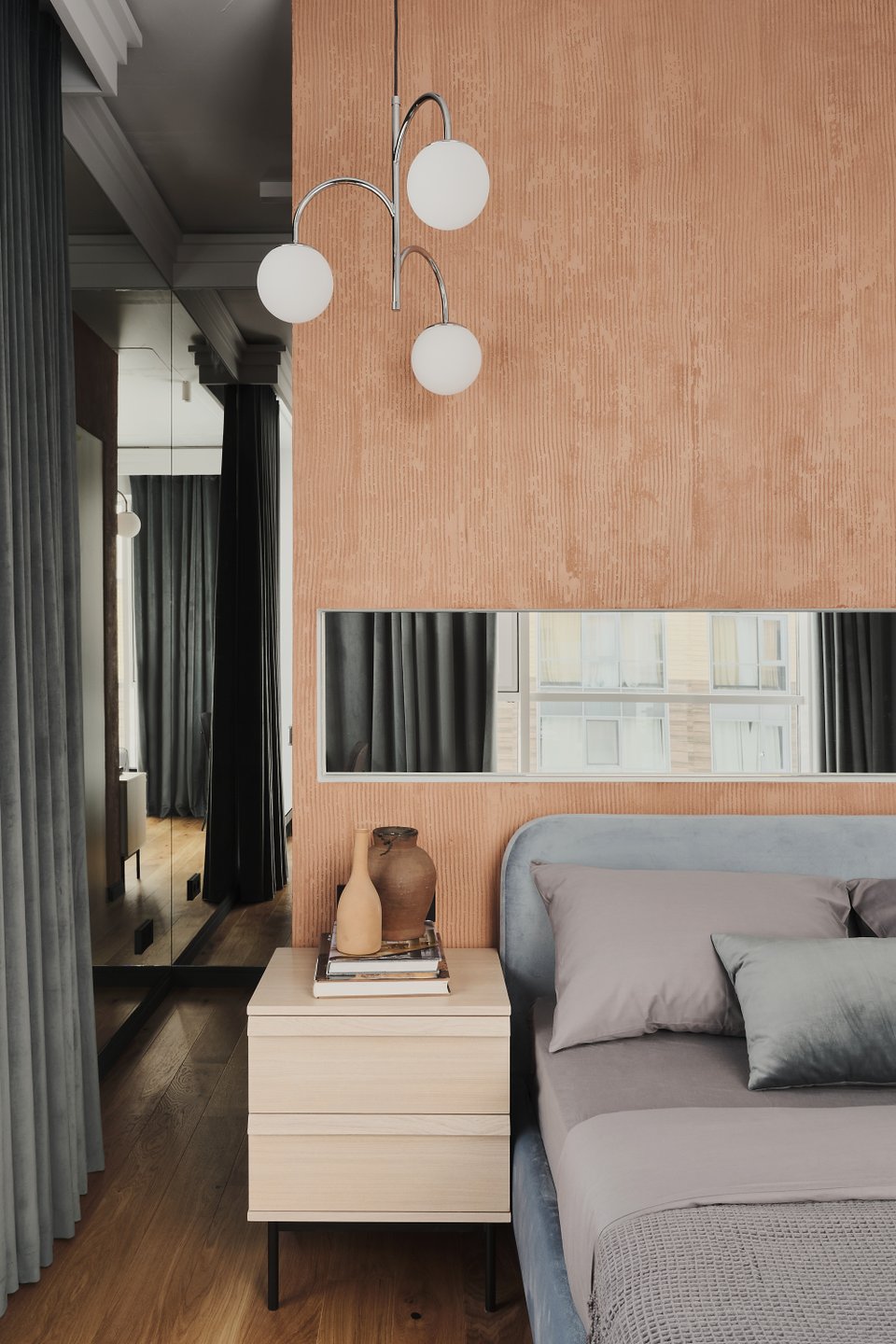 В квартире две спальни — перед дизайнером стояла задача оформить две совершенно разные по характеру комнаты, чтобы при заселении нескольких человек арендаторы могли выбрать, какая больше нравится.