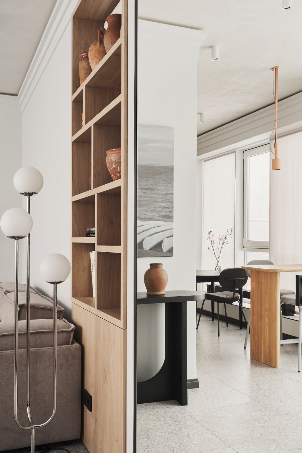 В этом интерьере искали гармонию между городским минимализмом и дачным уютом, лаконичностью линий и плавностью мягких форм. Посмотрим, что получилось.