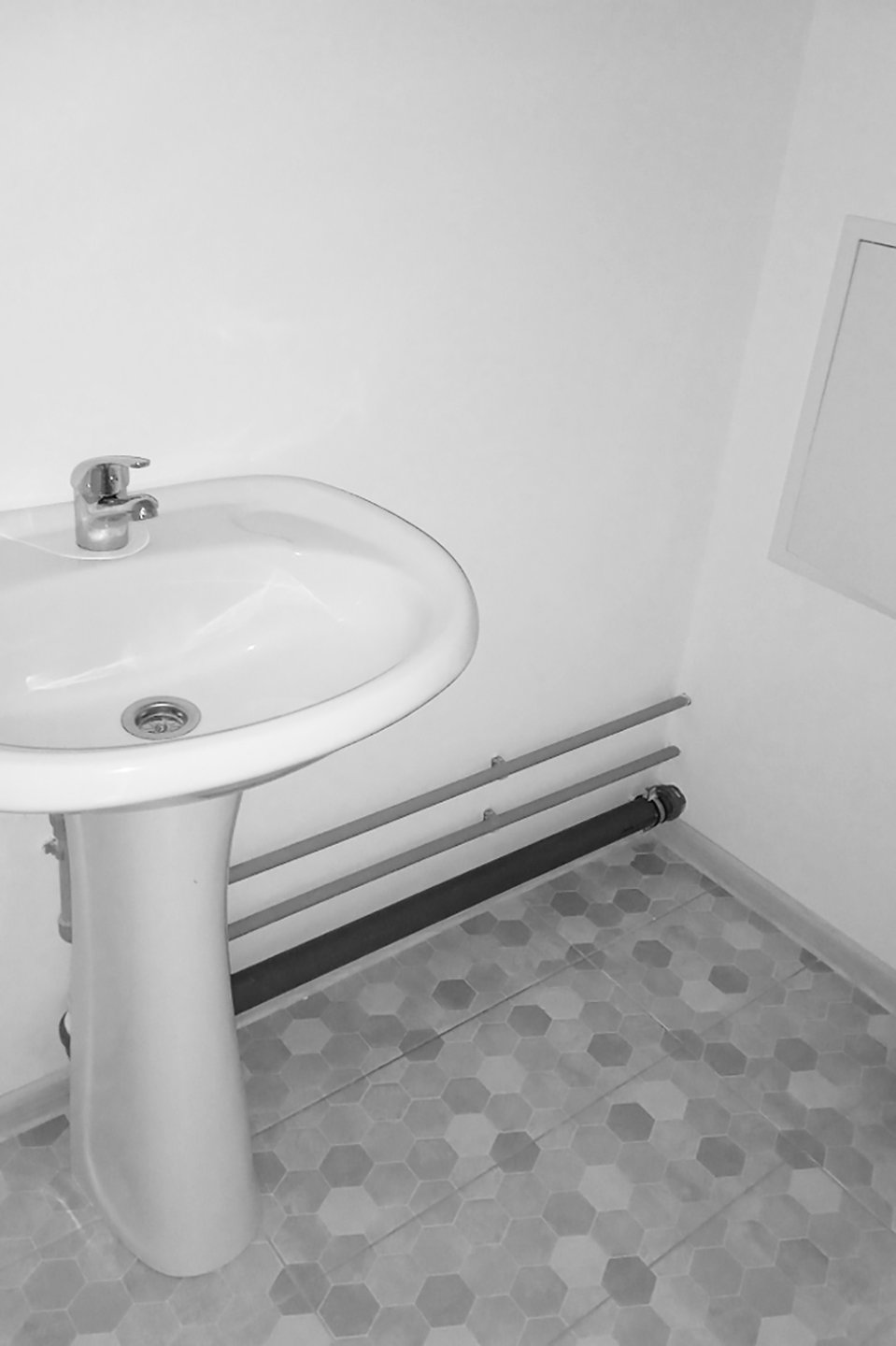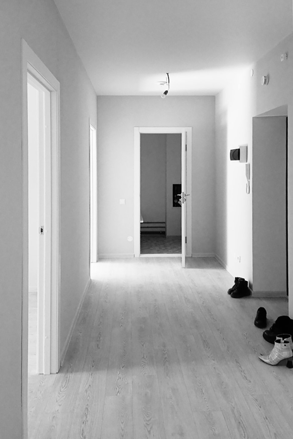 Студия находится на первом этаже жилого дома. Двухкомнатную квартиру купили с базовым ремонтом от застройщика, светлым, ничем не примечательным.