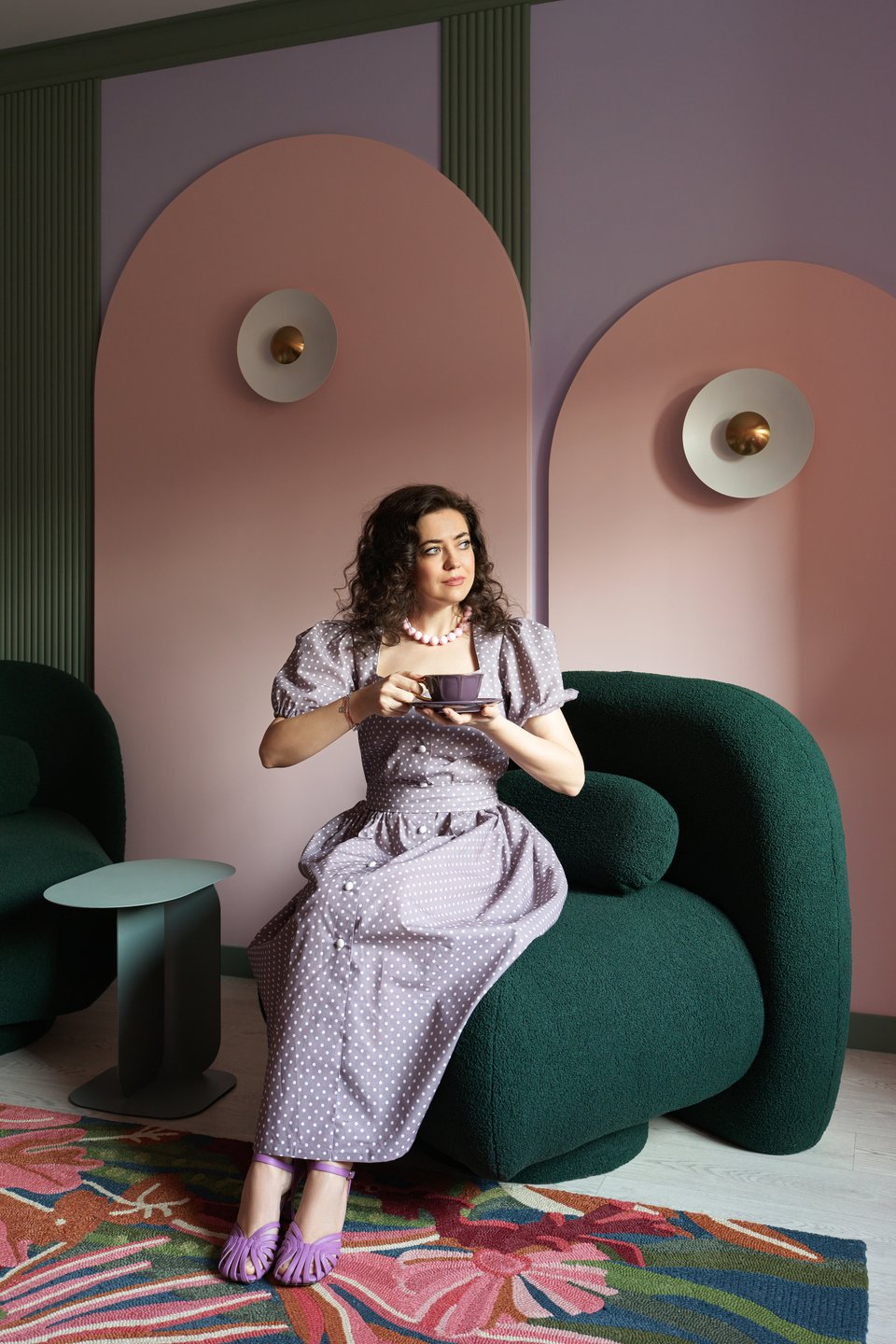 «Заказчица — блогер, стилист и хозяйка локального бренда одежды Likemammy, которая делится лайфстайлом жены и мамы в соцсетях, пишет творческие посты про жизнь и шьет платья в ретростиле, которые имеют множество поклонниц в разных городах России. Она может быть разной. Поэтому каждое помещение в этом пространстве — со своим характером и своей историей», — рассказывает дизайнер.