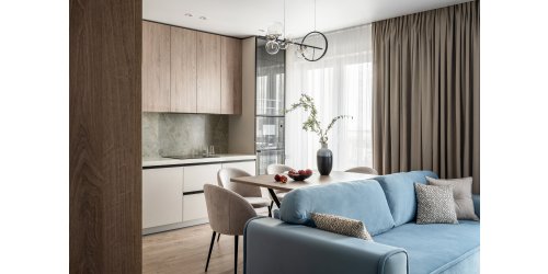 Сдержанный дизайн и отсутствие визуального шума, чистые линии и выверенные пропорции. Эта квартира на юге Сочи предназначена для молодой семьи — пары с двумя маленькими детьми. Посмотрим, какой он — интерьер для спокойного, размеренного отдыха.