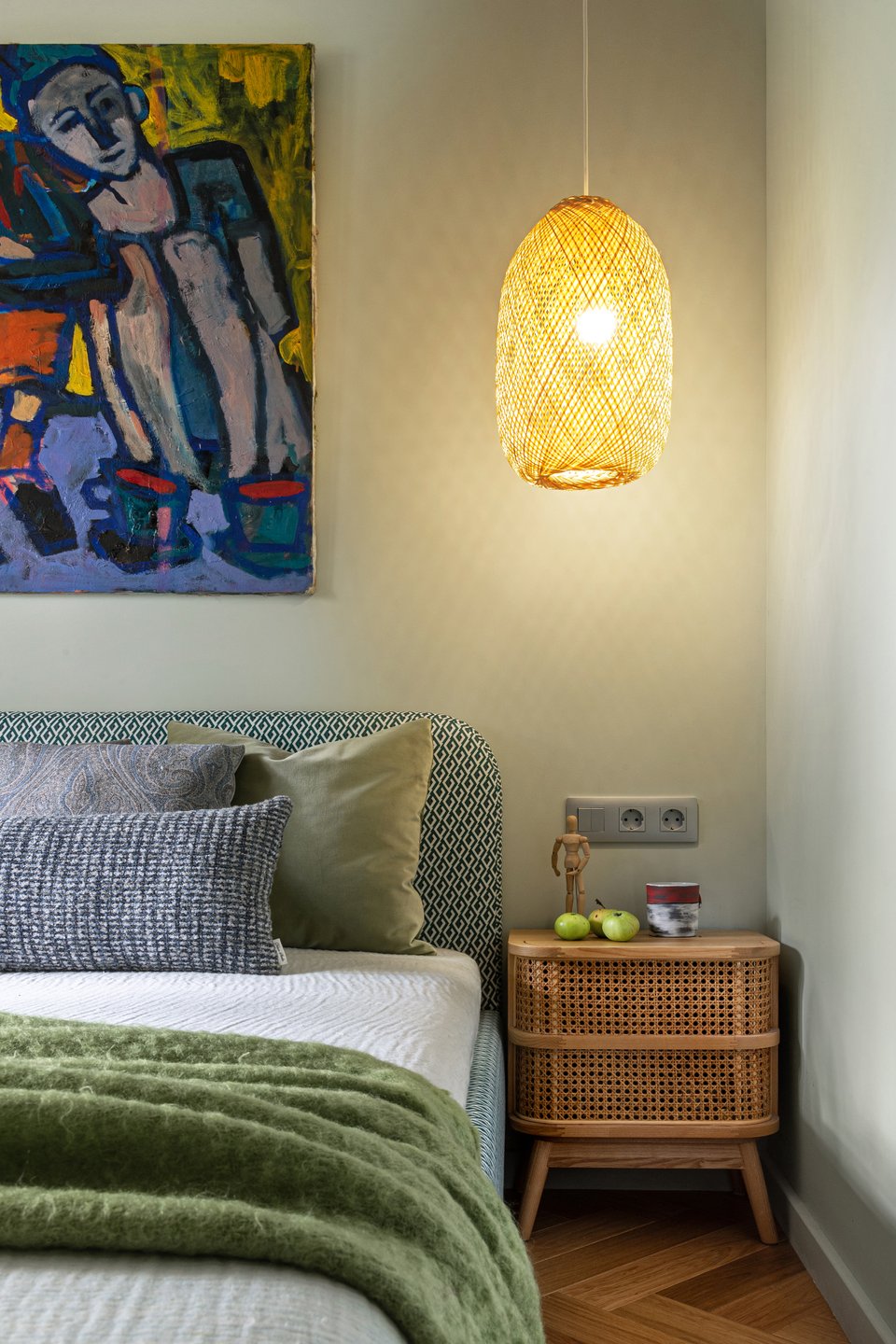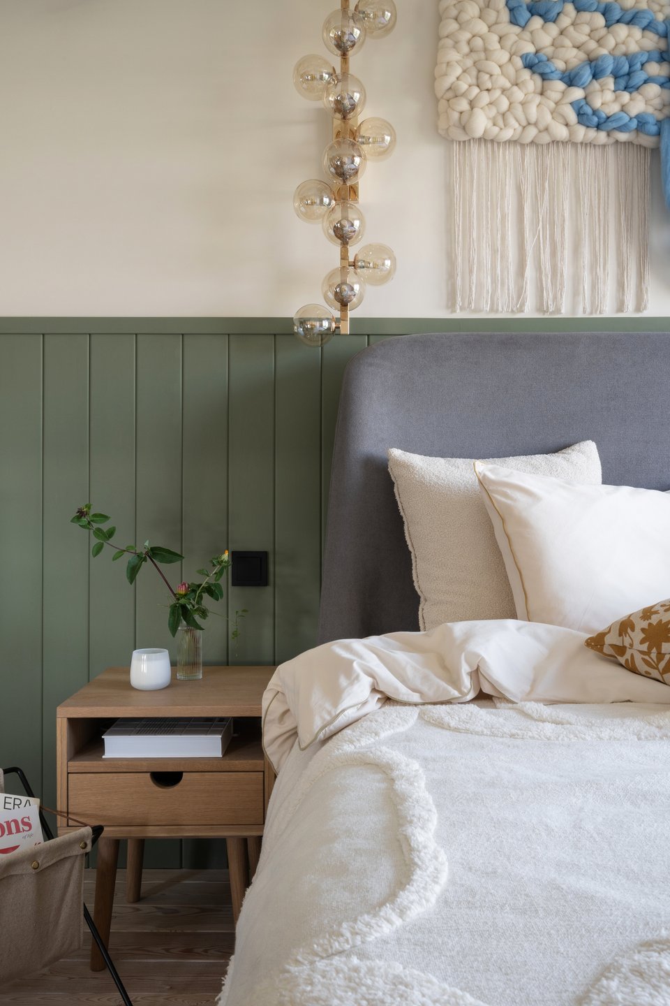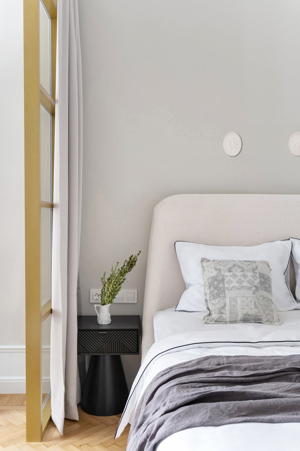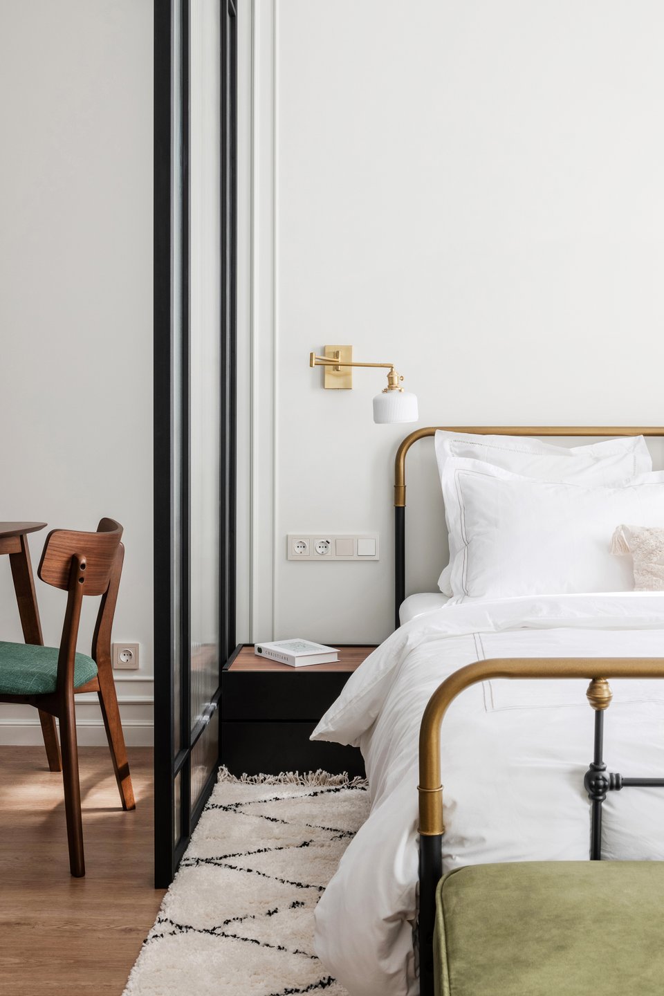 - На фото 1: трешка 103 кв.м в г. Санкт-Петербурге. В кадре кровать Кейт 160 от divan.ru. Дизайнер: Дарья Лехова, основатель Branch Studio; декоратор: Мария Нечаева; фотограф: Дмитрий Цыренщиков