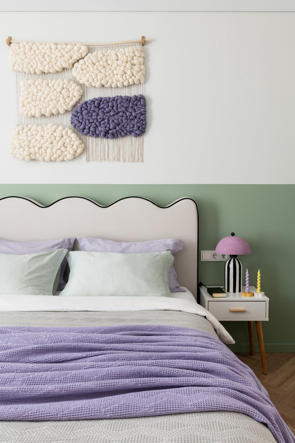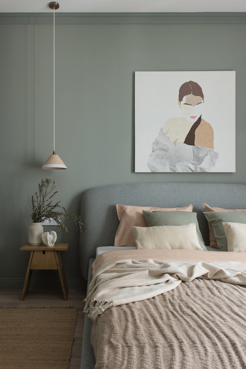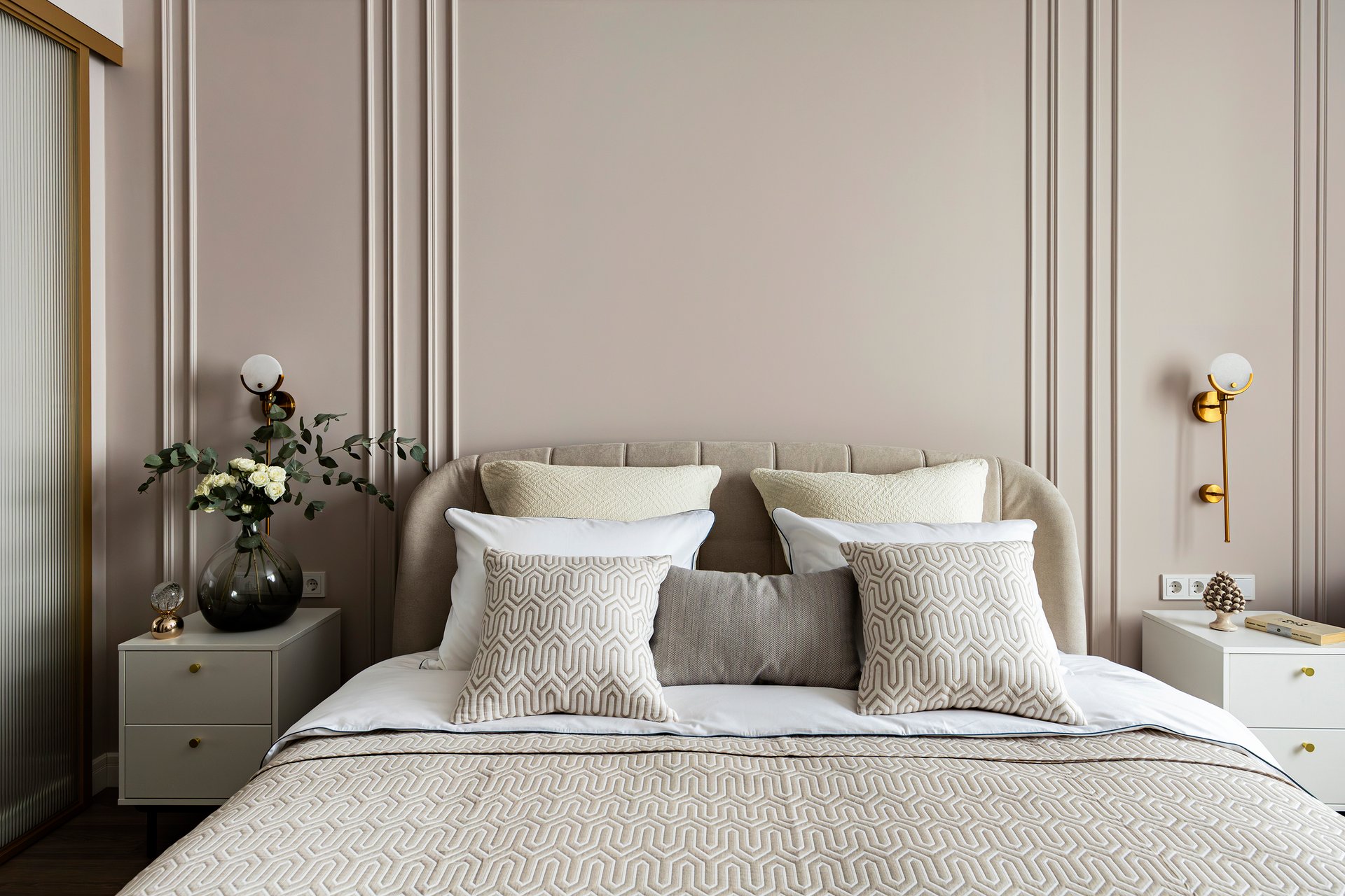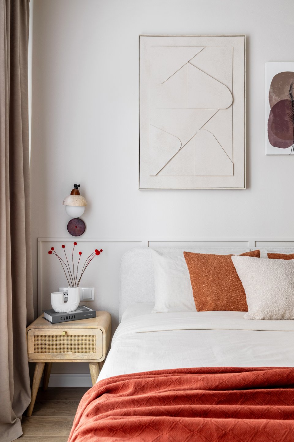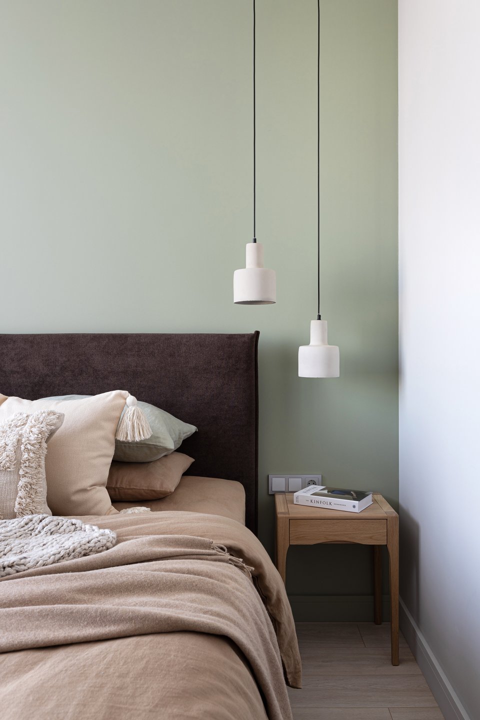 - На фото 1: двушка 60 кв.м, ЖК «Петровский парк». В кадре кровать Слипсон 160 от divan.ru. Дизайнер: Полина Агафонова; стилист: Ирина Темнова; фотограф: Антон Лихтарович