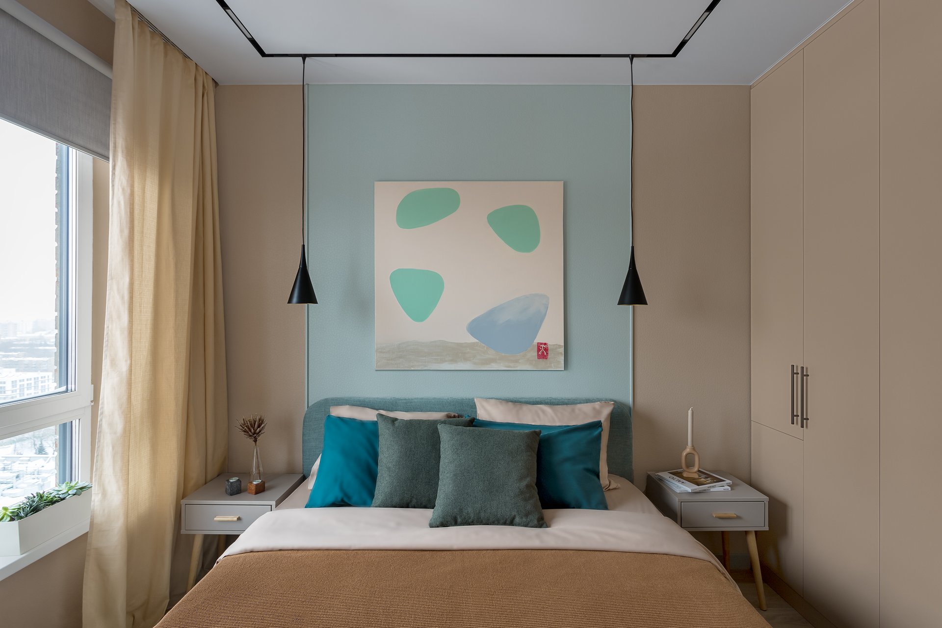 - На фото 2: однушка 50 кв.м в г. Москве. В кадре кровать Далти 160 от divan.ru. Дизайнер: Анна Суворова; фотограф: Екатерина Будюк