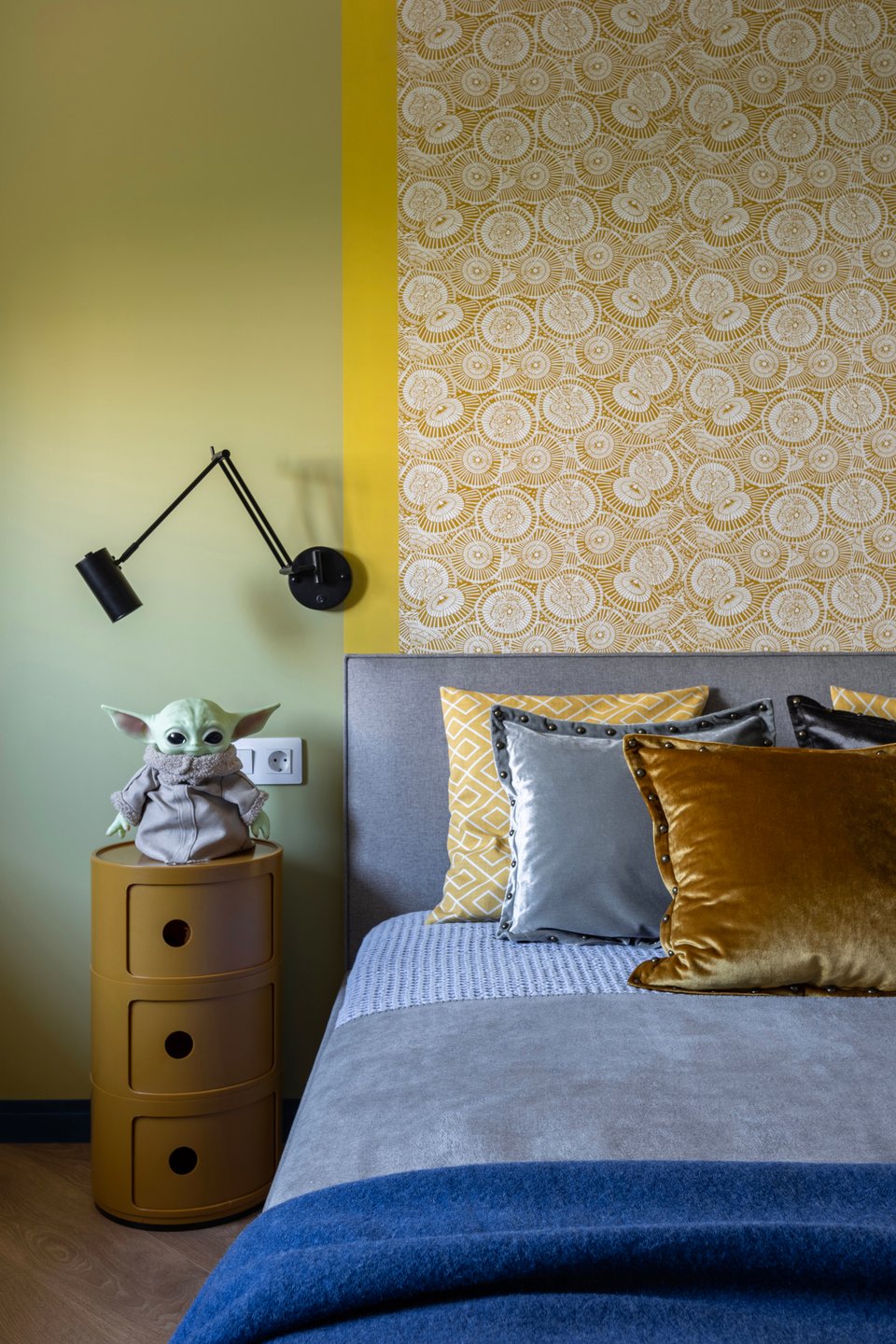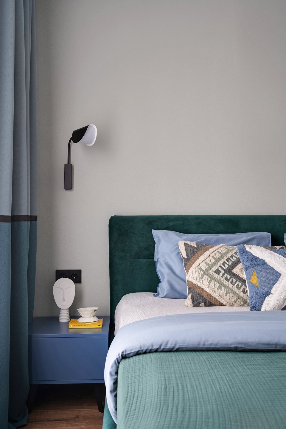 - На фото 2: трешка 76 кв.м, ЖК «Голливуд». В кадре кровать Динс 160 от divan.ru. Рум-тур, героиня и дизайнер: Наталья Кавалетта; декоратор: Наталия Милорадова; фотограф: Георгий Трушкин
