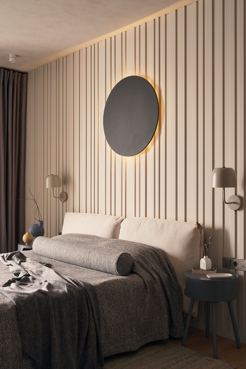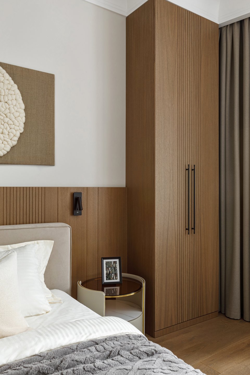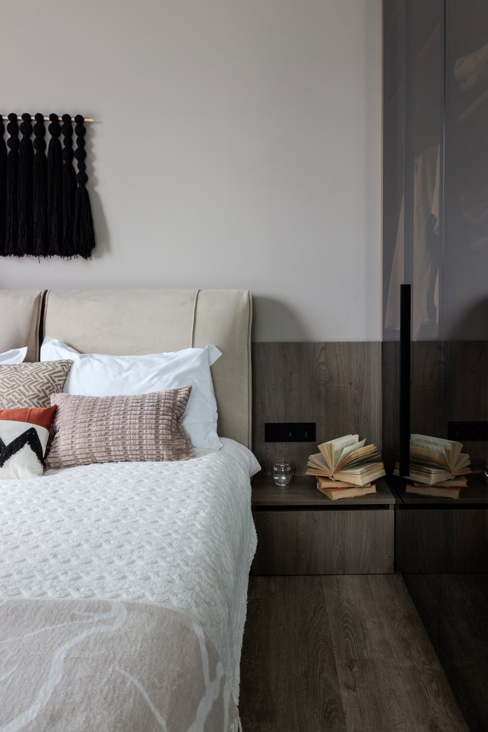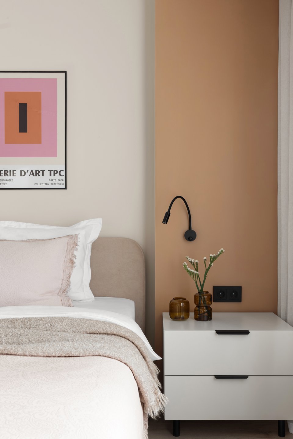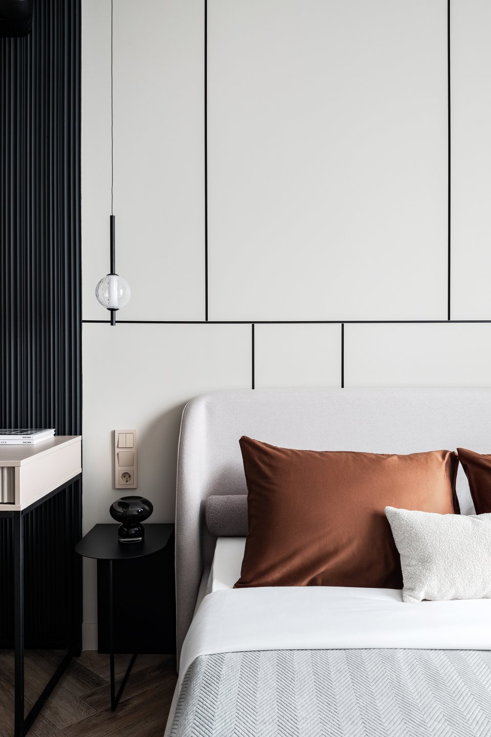 - На фото 5: трешка 104 кв.м в г. Москве. В кадре кровать Вега-Floor 160 и тумба прикроватная Рошаль. Дизайнер: Юлия Сергеева; стилист: Ирина Темнова; фотограф: Евгений Гнесин