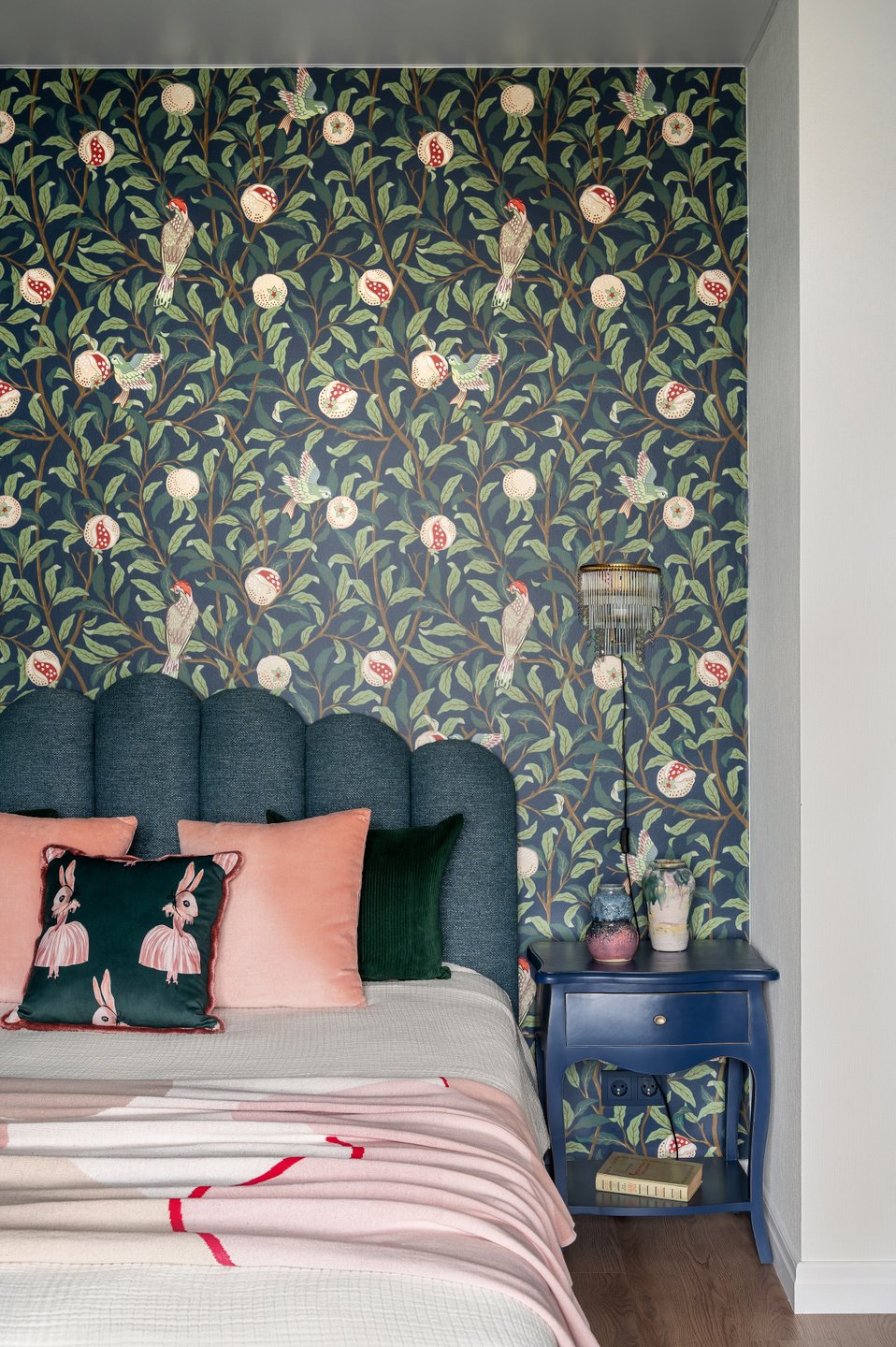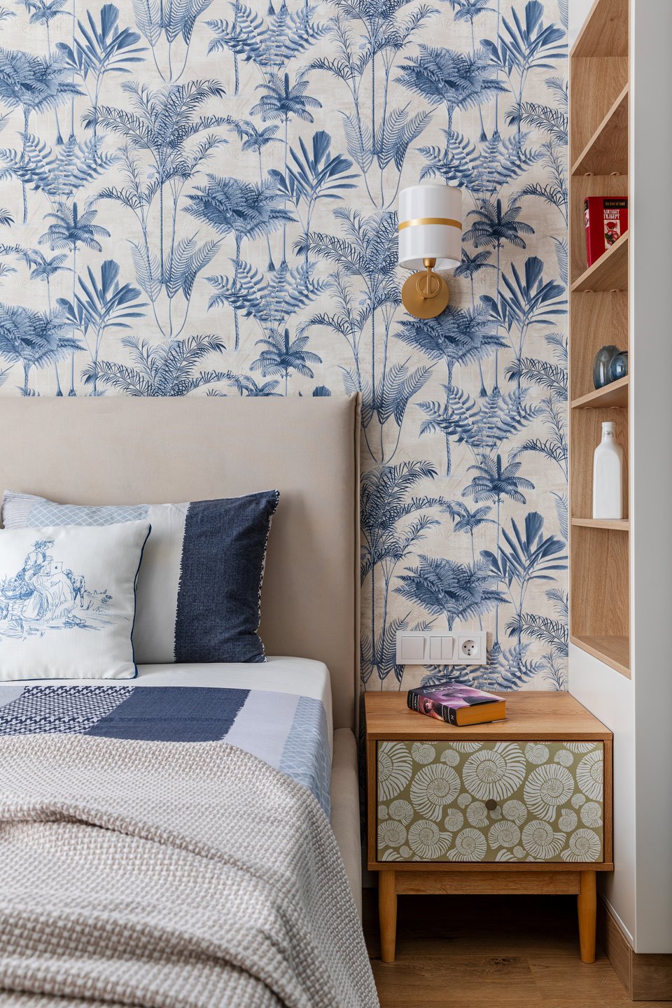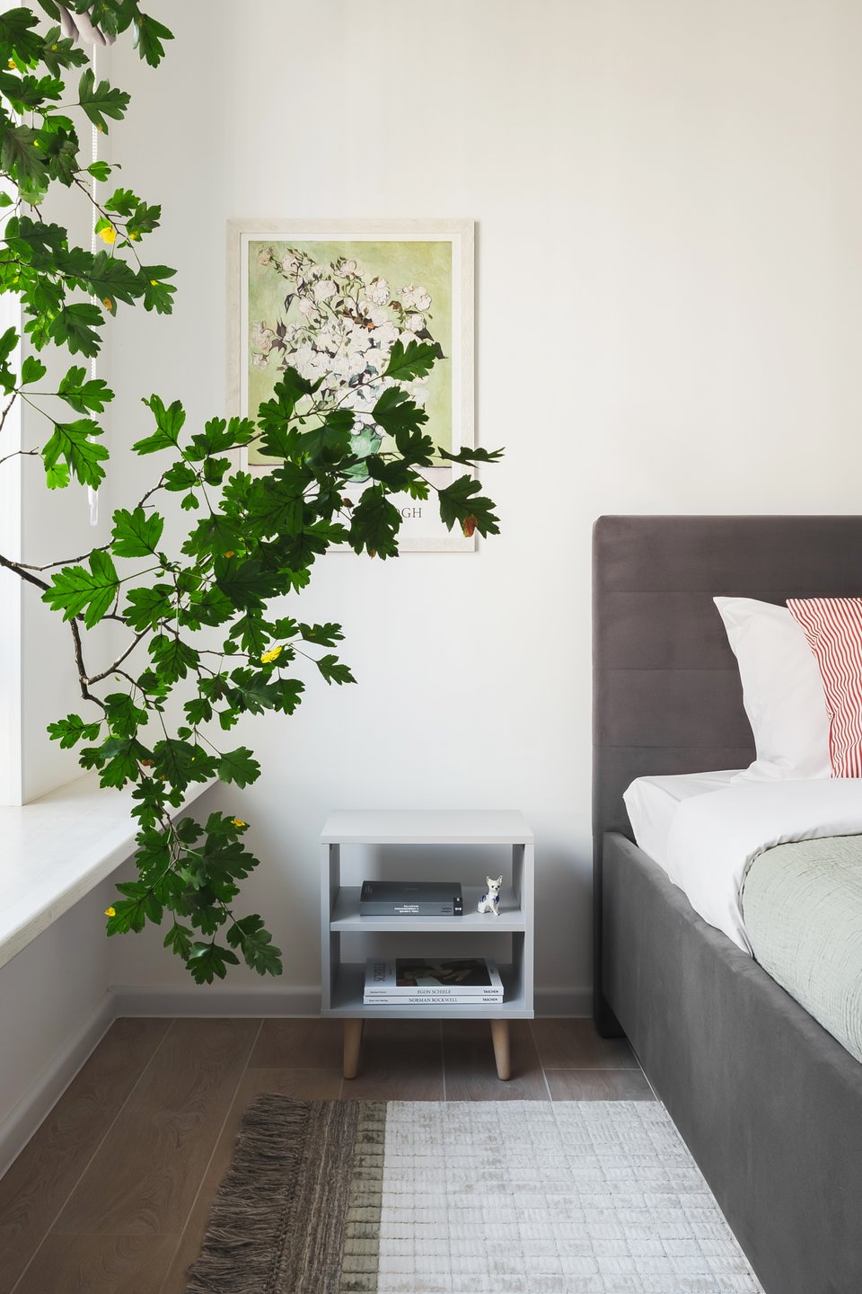 - На фото 2: трешка 83,3 кв.м в г. Москве. В кадре кровать Фостер 180 и тумба Енссон — все от divan.ru. Дизайнер: Дарья Бардина; фотограф: Константин Пырьев