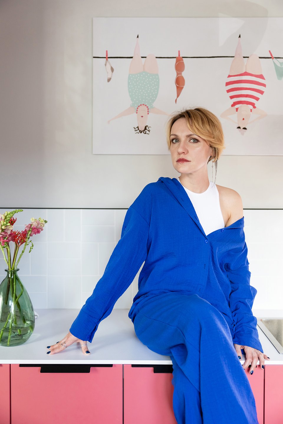 «Арт на стене кухни я придумала сама, — делится дизайнер. — Мне хотелось изобразить довольных дам с Балтийского побережья в пляжный сезон. Мы предоставили разработчикам точное техническое задание, основанное на моих идеях и пожеланиях заказчицы».