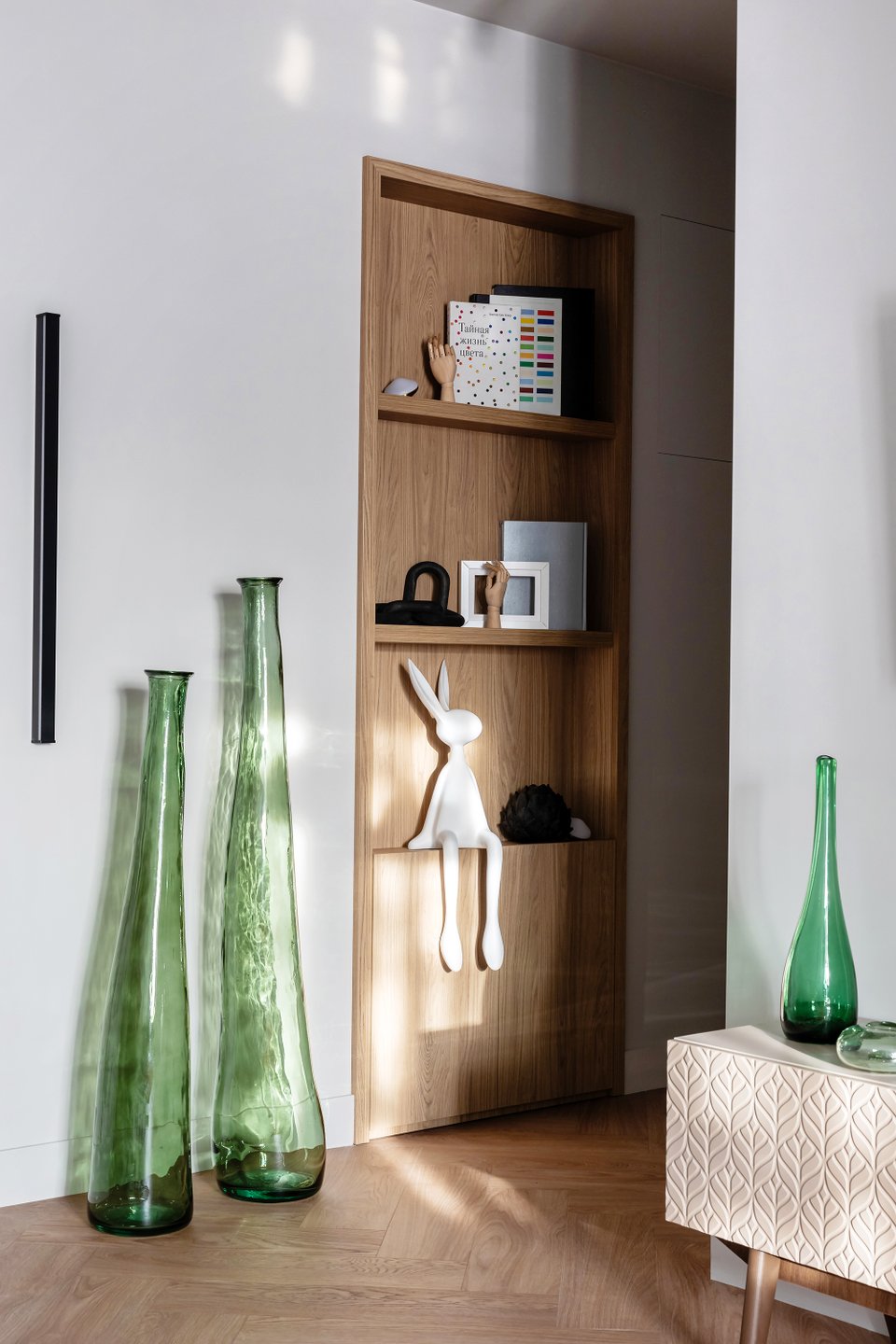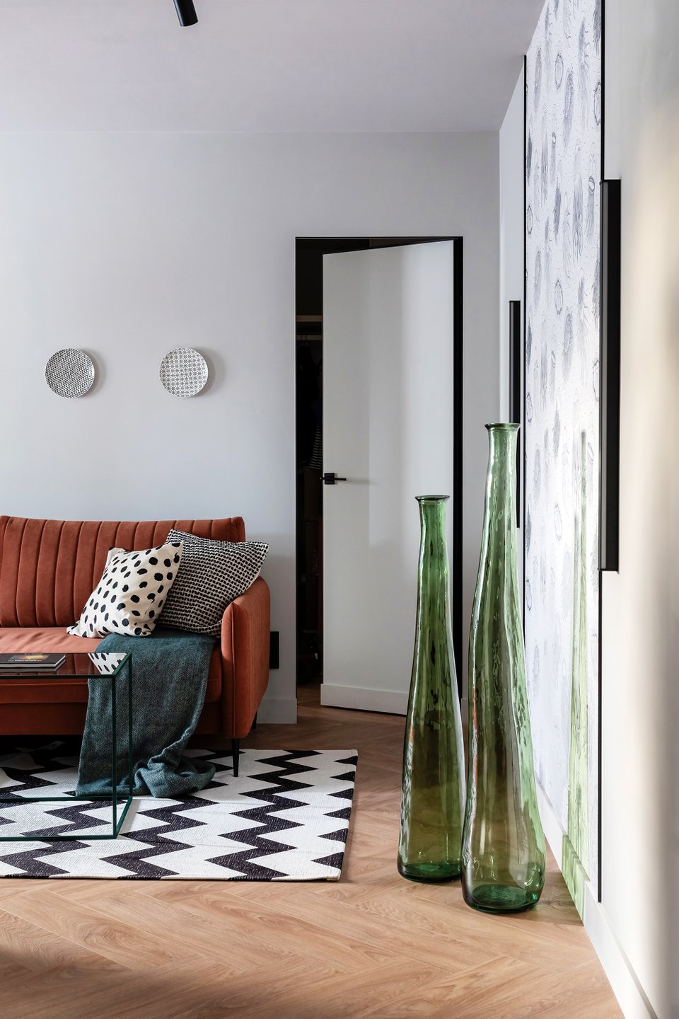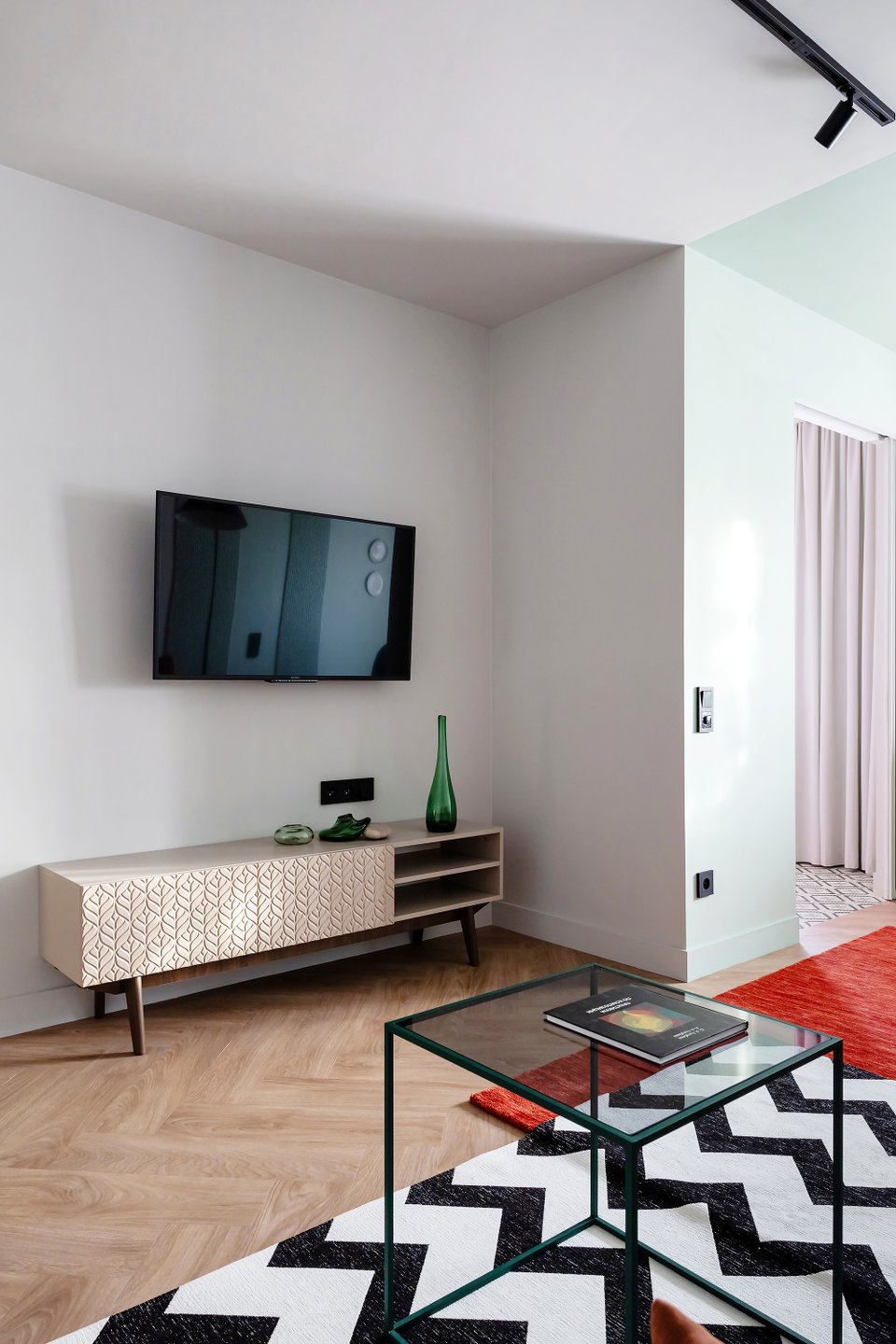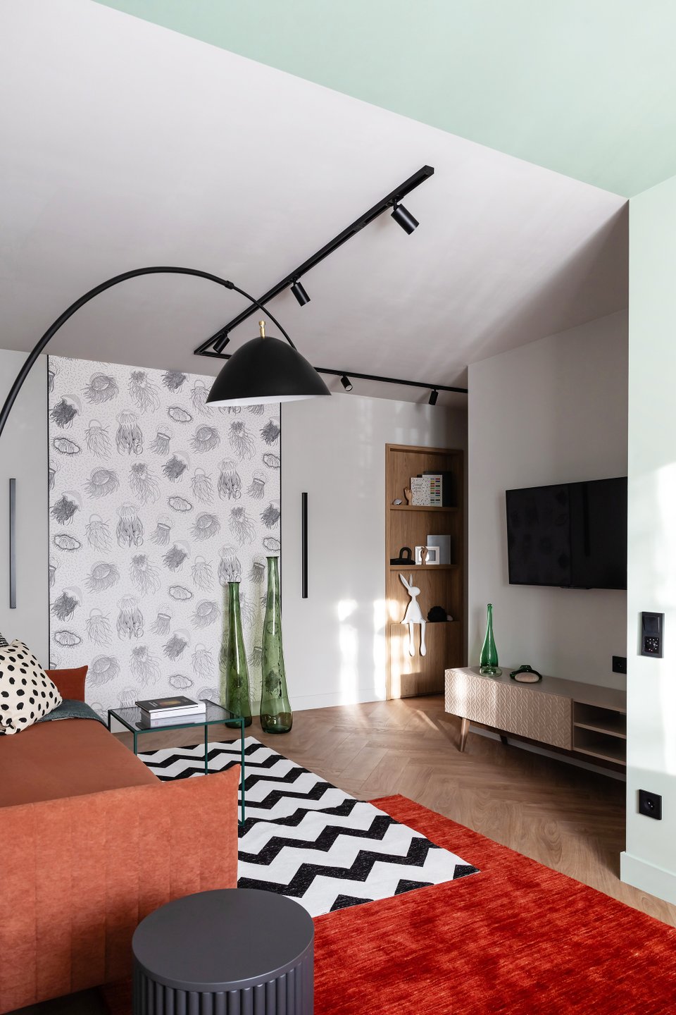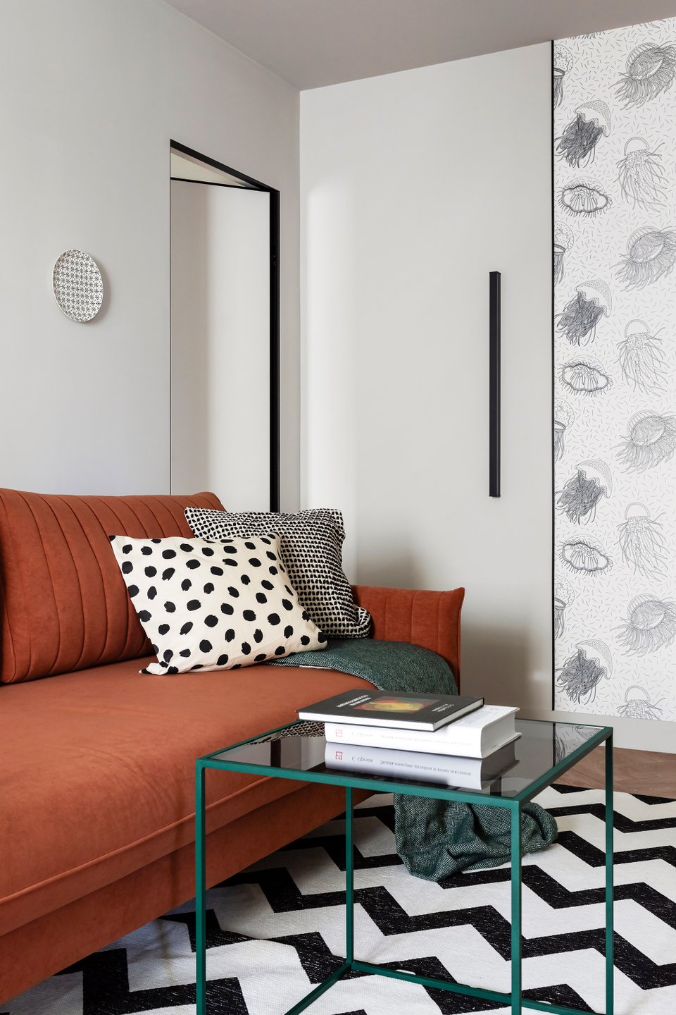 «Этот интерьер создавался "от обратного", — рассказывает автор проекта. — Заказчица много путешествует, поэтому сразу отметила все боли арендных апартаментов: несовременный ремонт, отсутствие большой кровати, затемняющих штор и, конечно, визуальный ряд. Она пожелала создать уникальный интерьер, отличающийся от стандартного отельного стиля, избегая при этом бежевых оттенков».