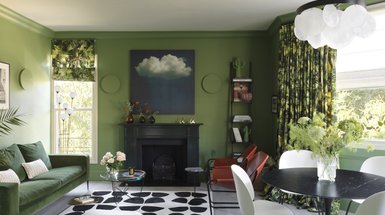 Сочетание с зеленым выглядит ярко и эффектно. В гостиной такое смелое оформление может быстро надоедать. Со светло-зеленым бордо можно сочетать в ванных и туалетных комнатах, где меньше проводим времени — бодрое и радостное настроение обеспечено.