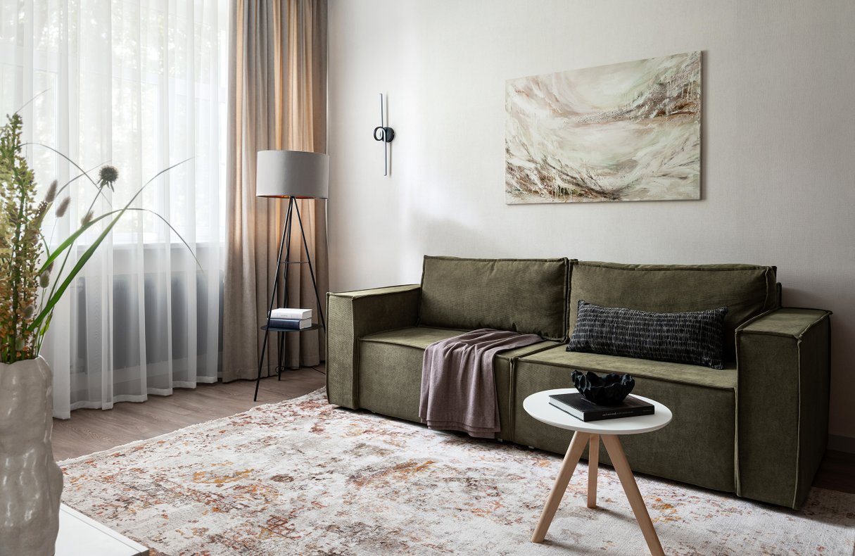 75 кв.м: минимализм с акцентами индиго и оливы в бывшей коммуналке