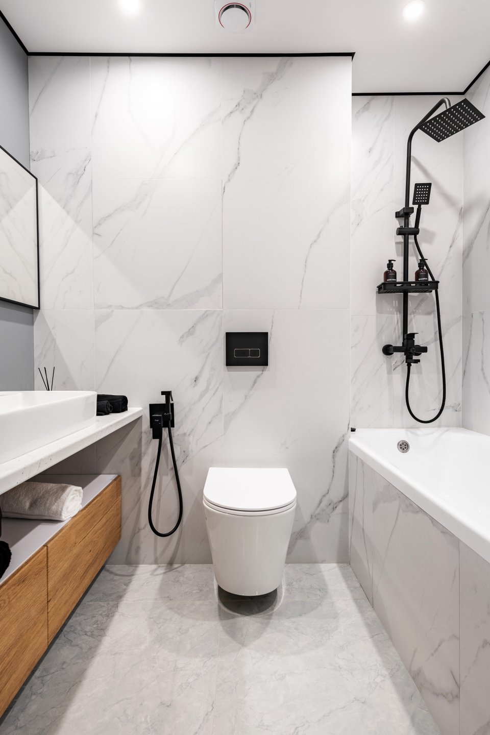 - На фото 1: двушка 72 кв.м, ЖК «Огни». Архитектор: Алиса Басова; стилист: Дарья Ишкараева; фотограф: Сергей Красюк