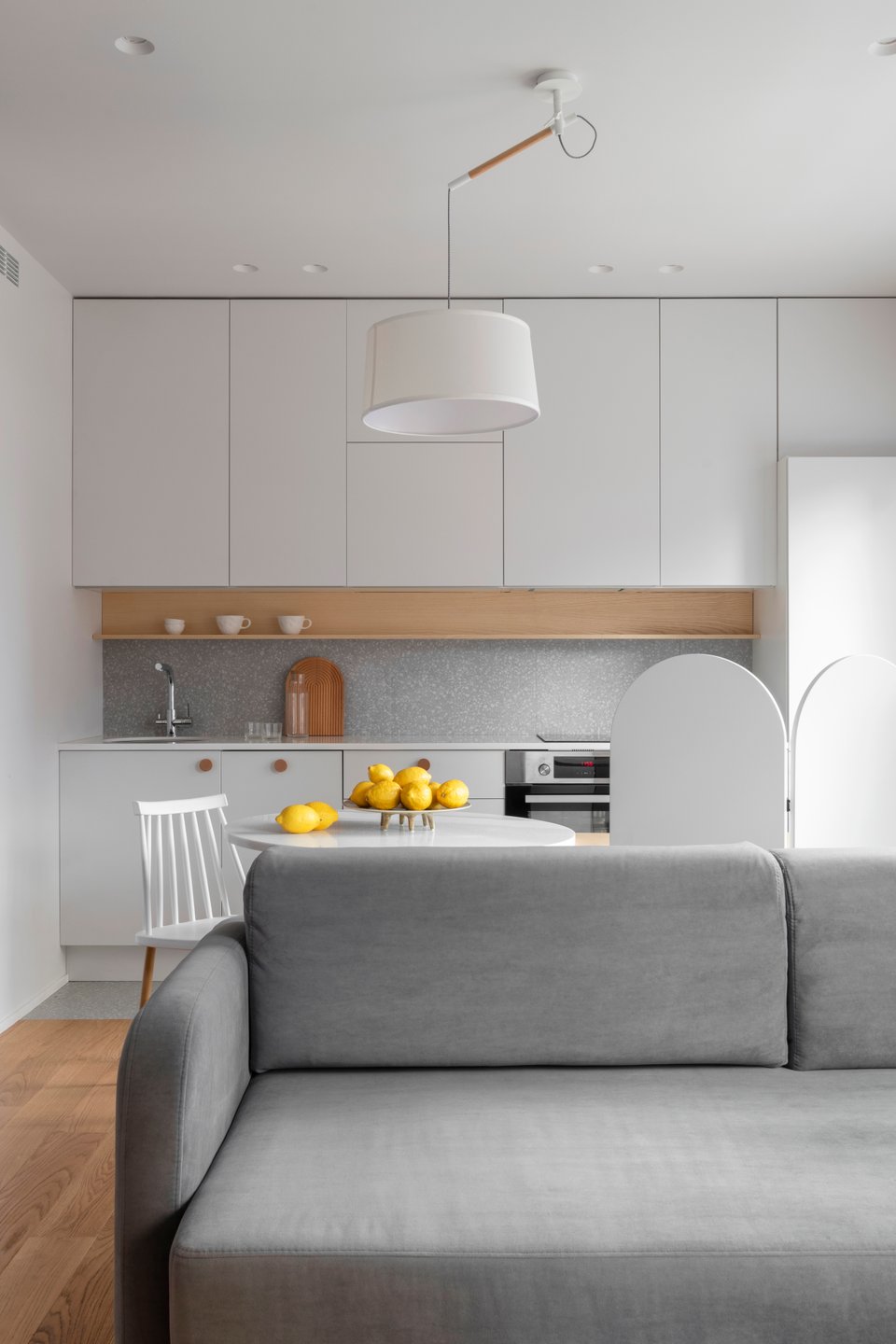 - На фото 5: однушка 40 кв.м, ЖК «Царская Столица». Дизайнер: Алена Дорофеева; декоратор: Екатерина Наумова; фотограф: Иван Сорокин (@j.sorokin)