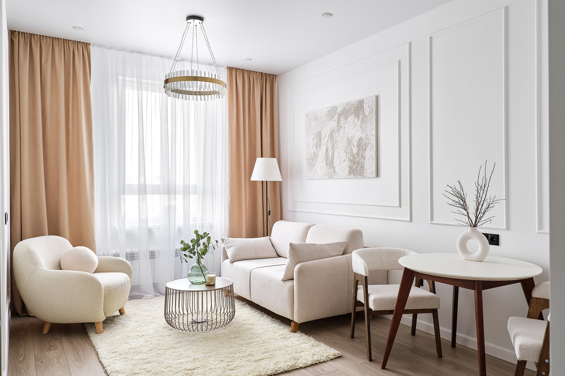 Cloud Dancer станет идеальным нейтральным фоном, который придаст гостиной целостности и стиля. Его хорошо использовать как цвет для стен или большого дивана. Тогда на его фоне ярко заиграют цветные акценты — например, журнальный стол в золотом оттенке или темные графичные элементы. А для уютной атмосферы можно сочетать его с текстурами: ворсистым ковром, деревянным столиком и матовым текстилем.