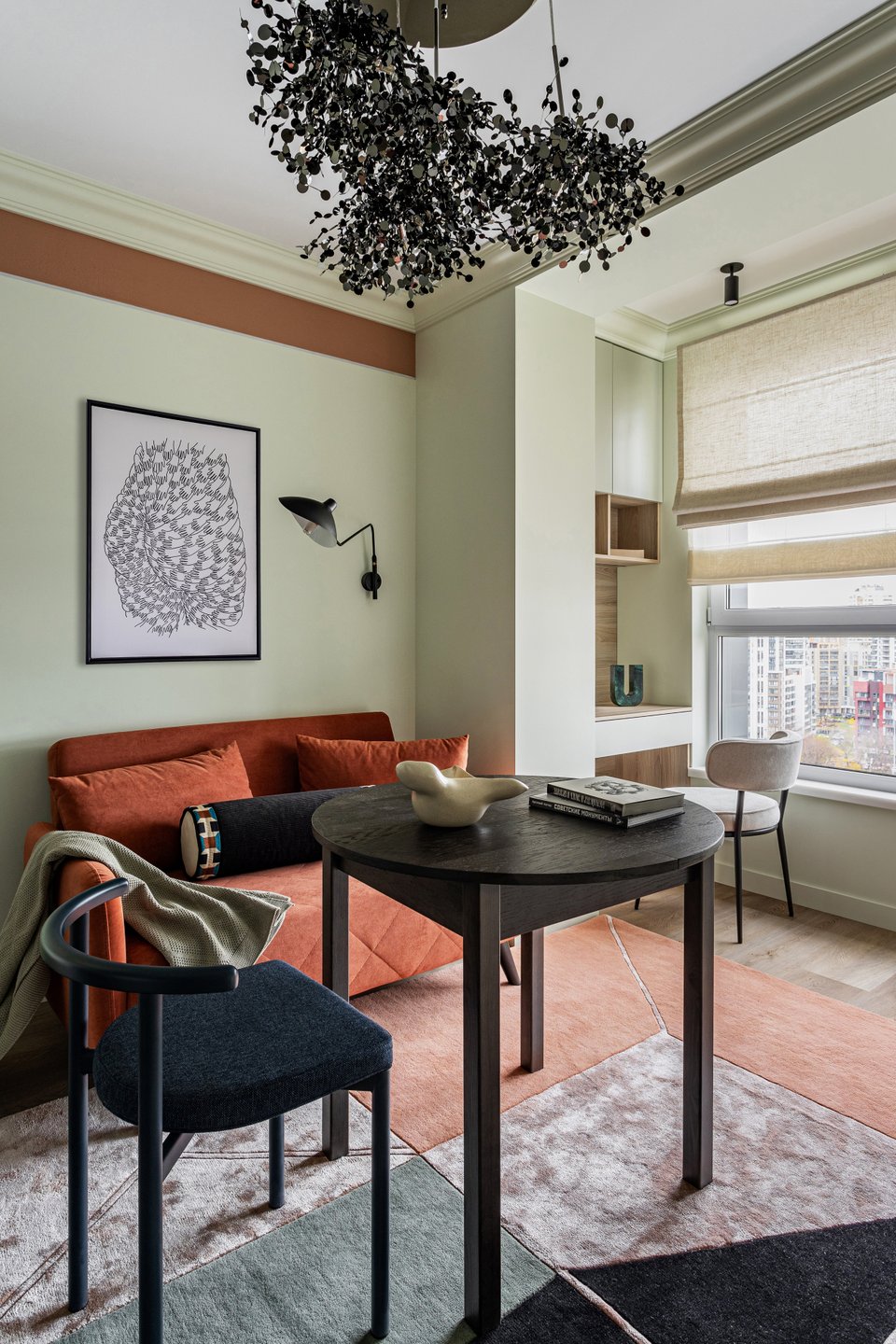 - На фото 4: однушка 38 кв.м. Дизайнер: Сара Михайлова; стилист: Дарья Сухарева; фотограф: Михаил Бравый