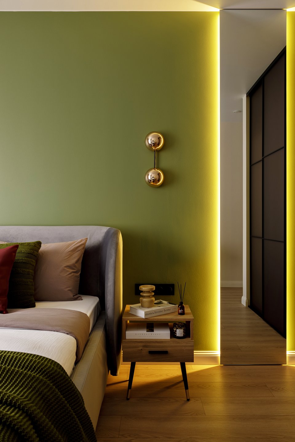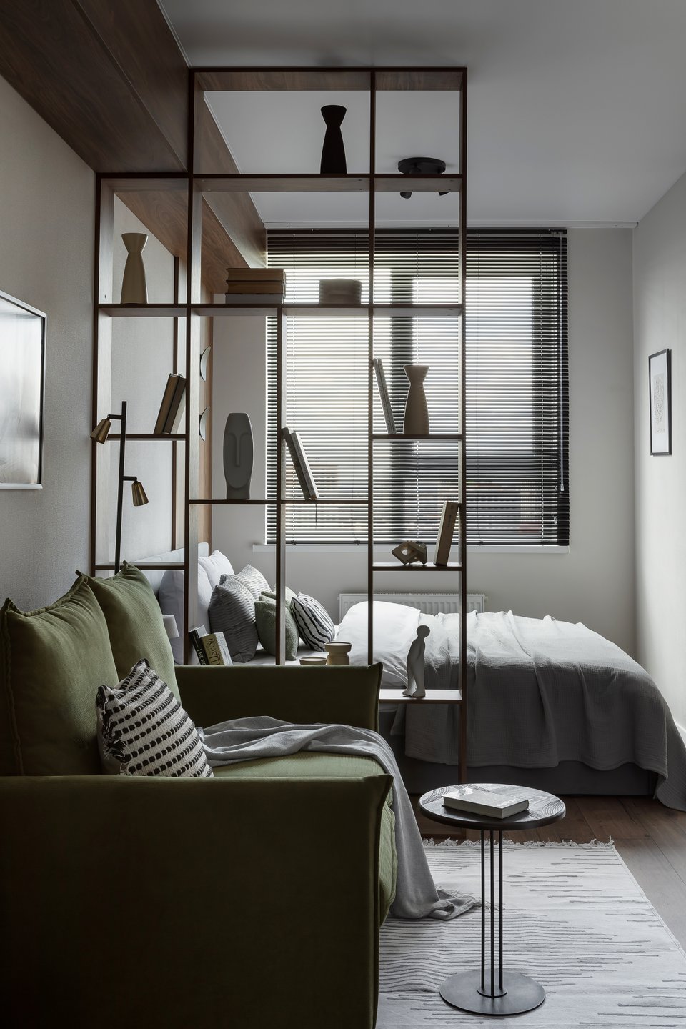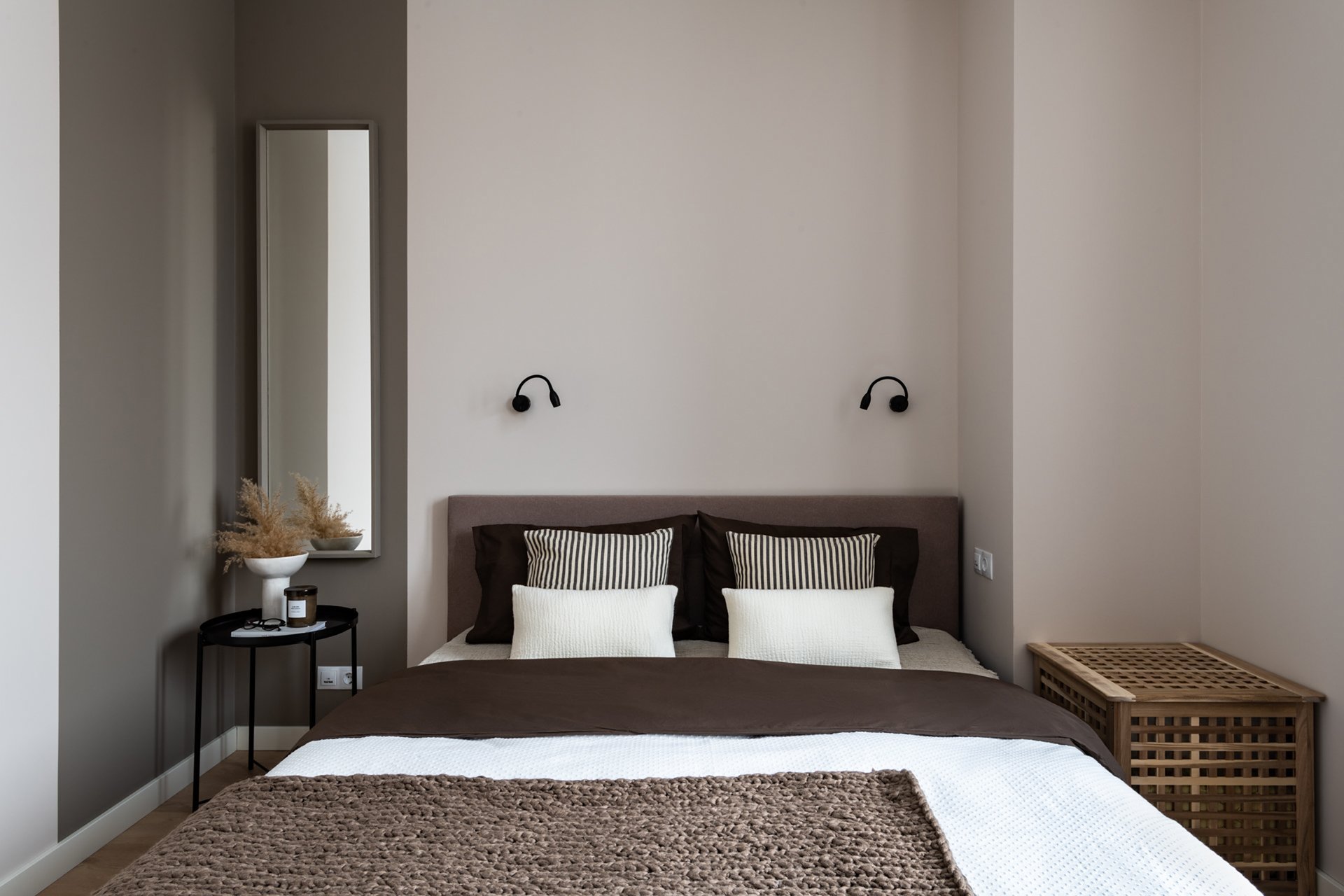 - На фото 3: однушка 38 кв.м. В кадре кровать Лайтси 160. Дизайнер: Сара Михайлова; стилист: Дарья Сухарева; фотограф: Михаил Бравый