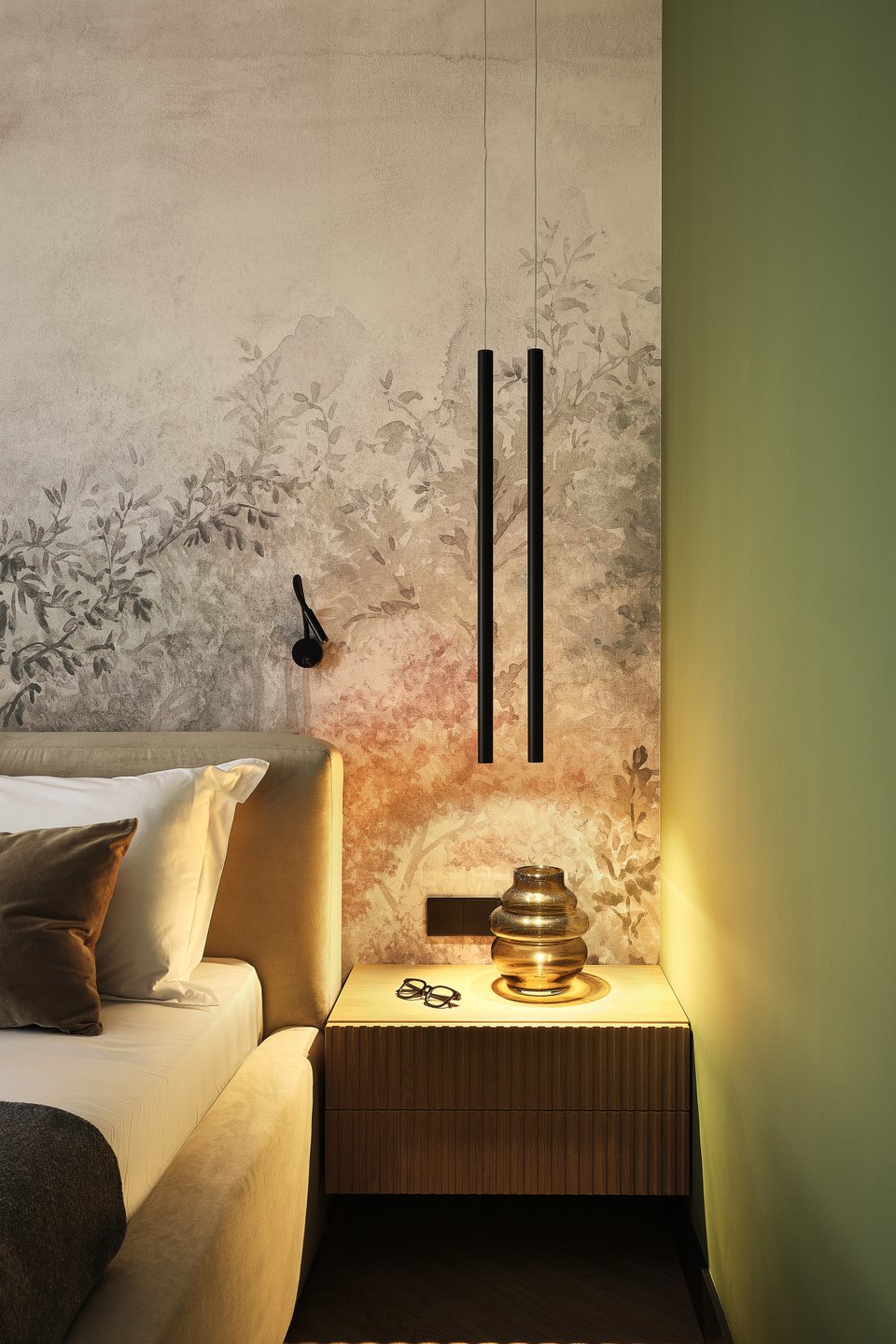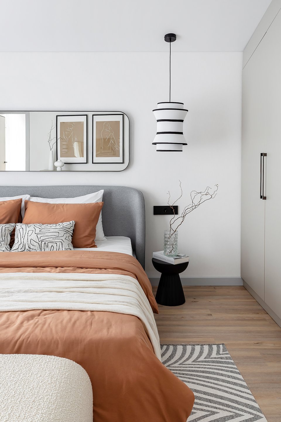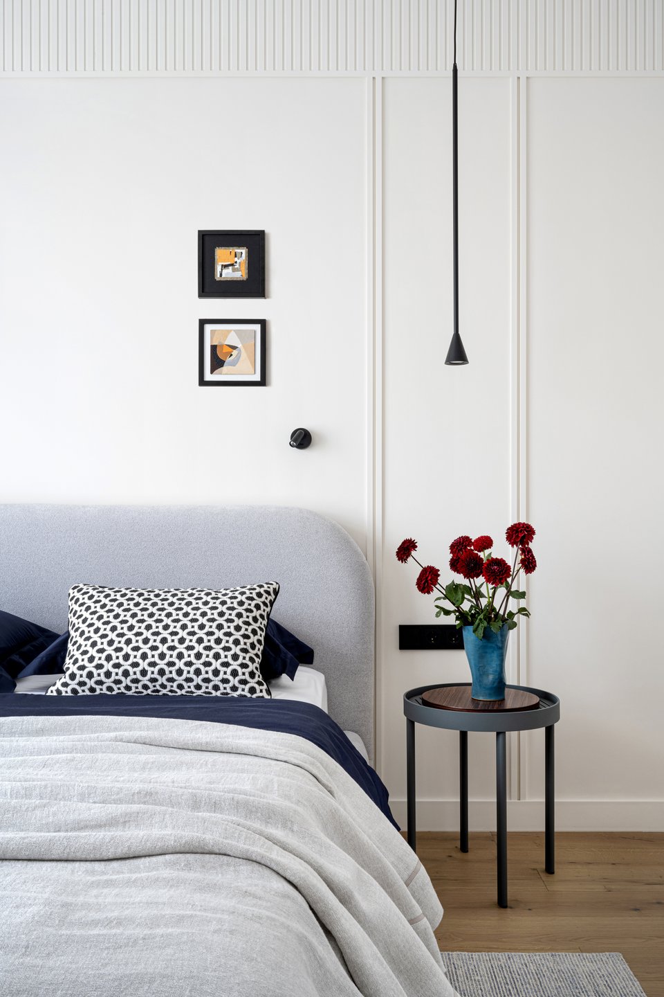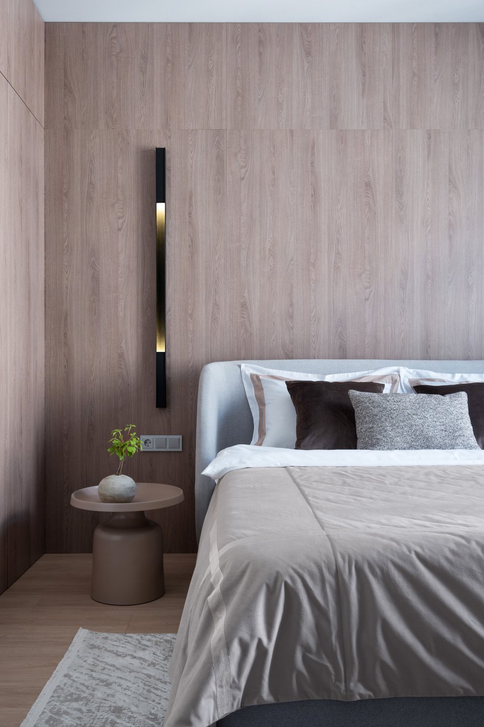 - На фото 4: евродвушка 65 кв.м, ЖК «Новая Боровая». В кадре кровать Вега-Floor 160 и подушка Рейн. Дизайнер: Виктория Грузинова; фотограф: Екатерина Самойлович