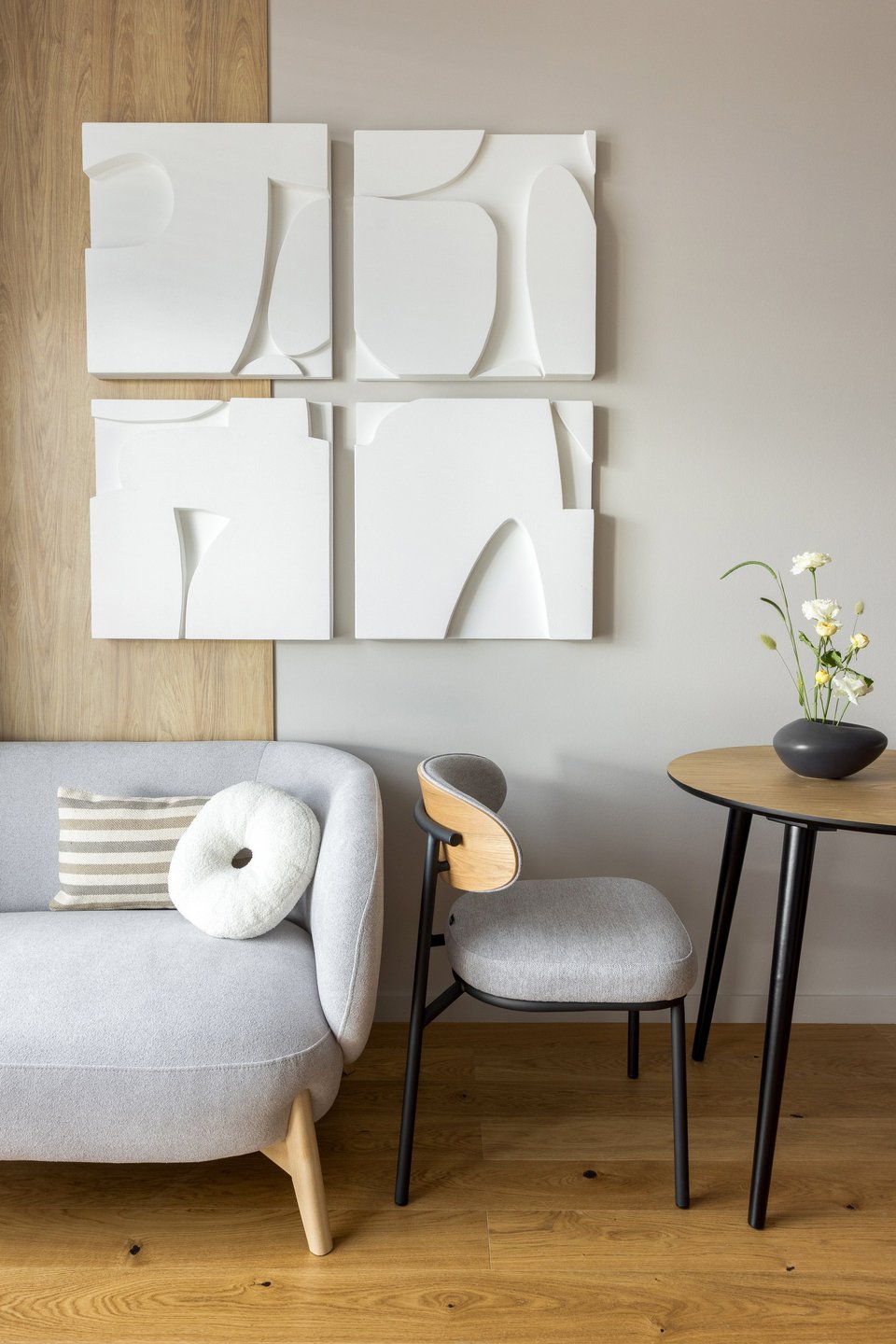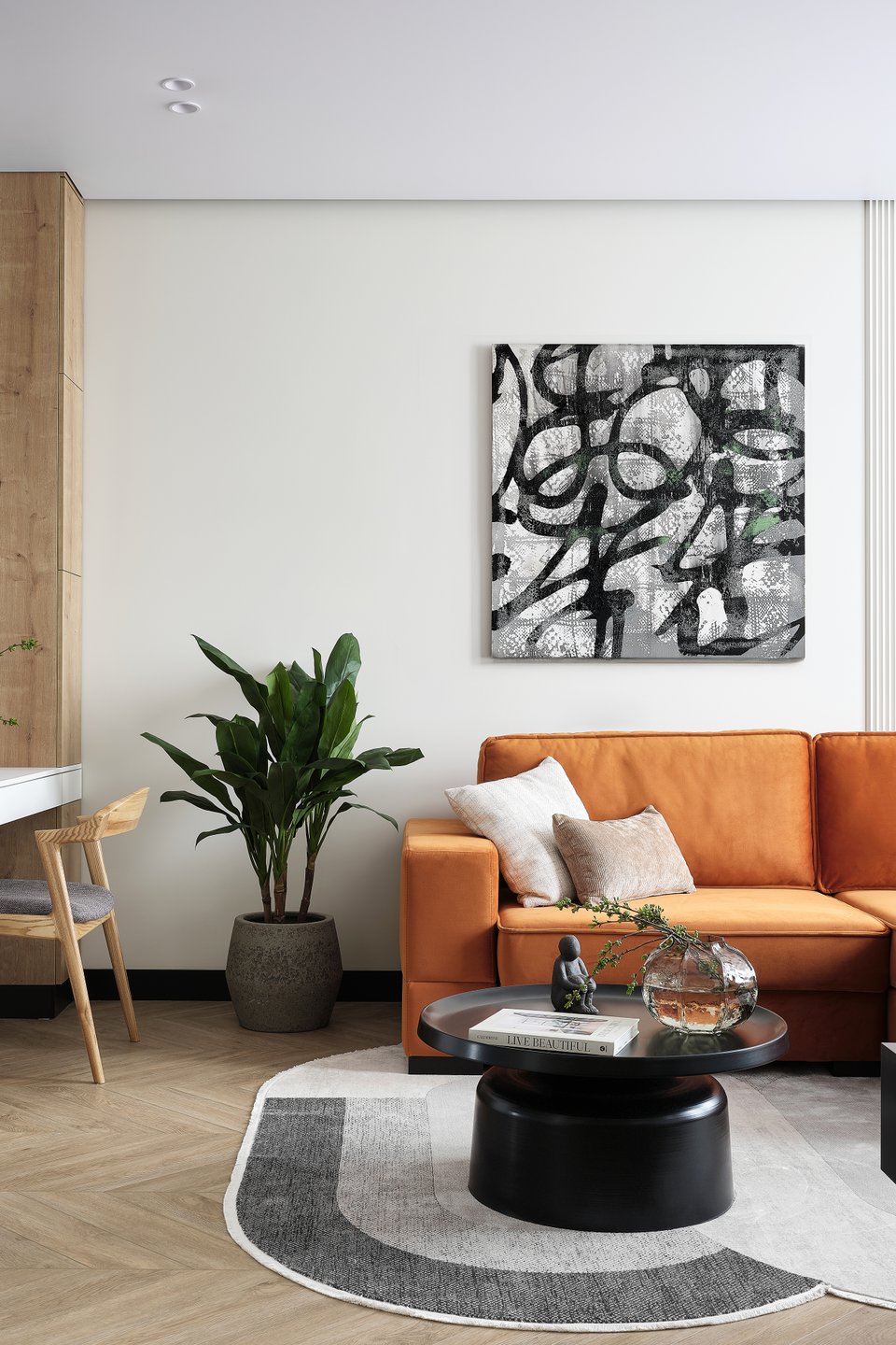 - искусство. Абстрактные картины, черно-белая фотография, графичные постеры, современная скульптура малых форм — они добавляют интеллектуальной глубины и связи с современной культурой;