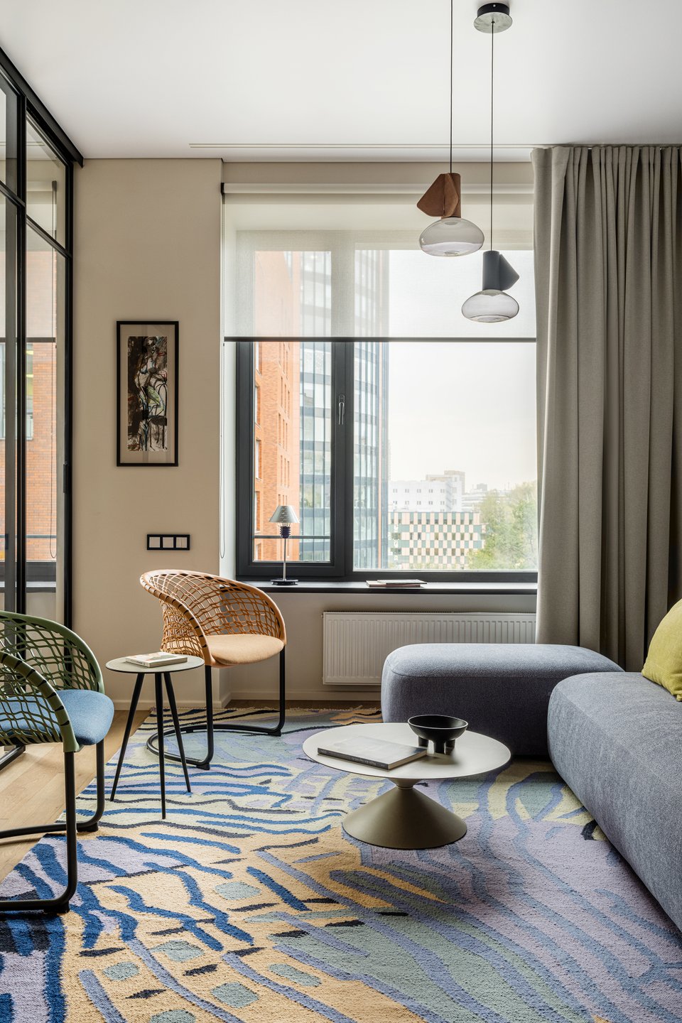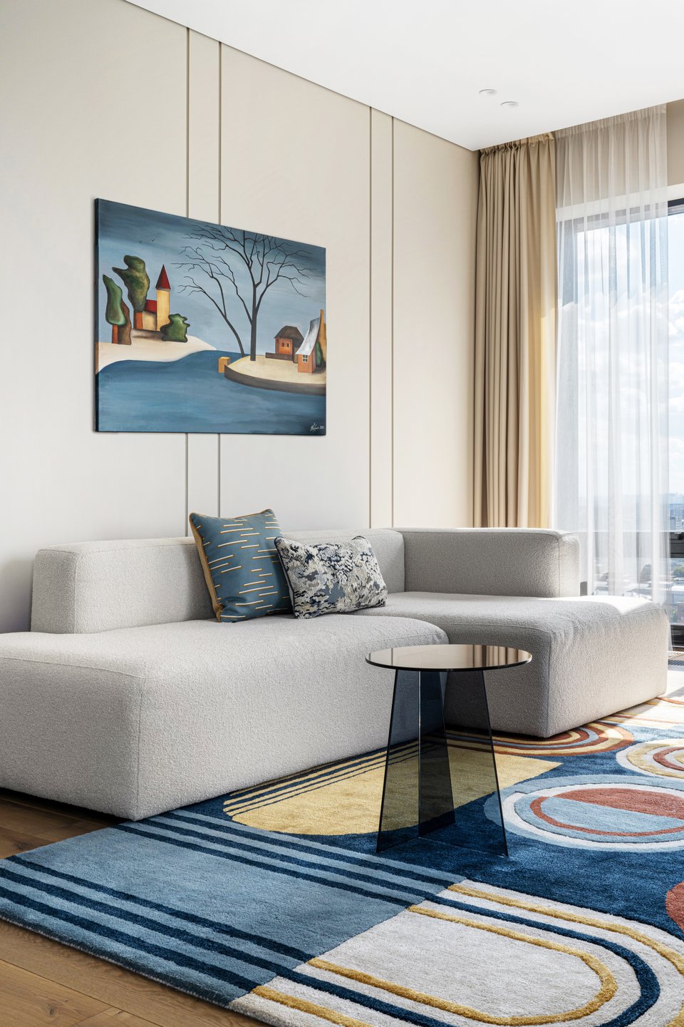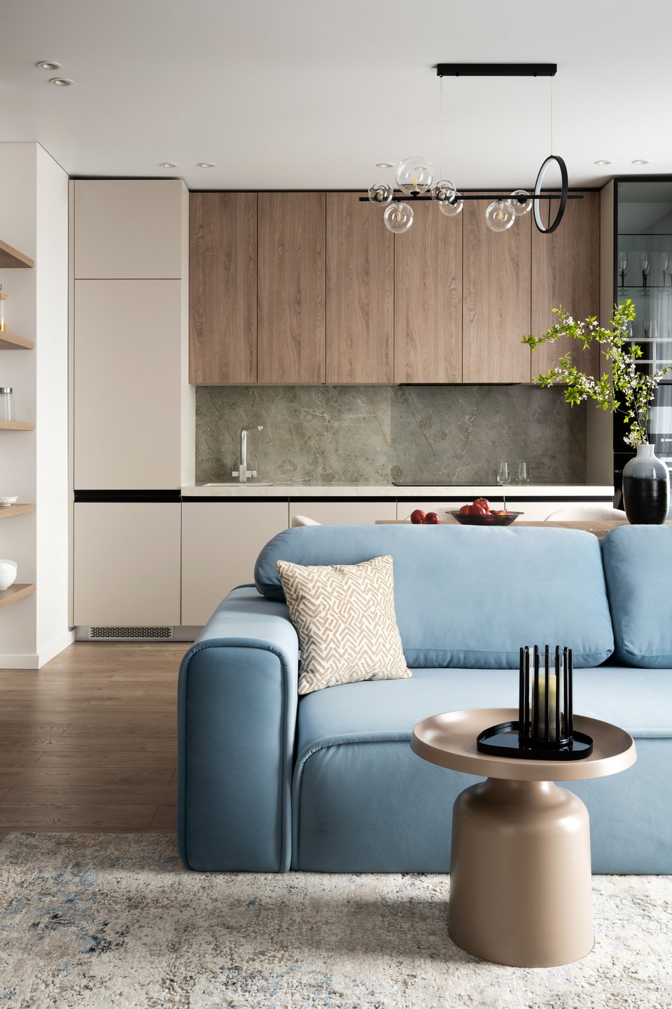 - На фото 2: евродвушка 65 кв.м, ЖК «Новая Боровая». В кадре диван Виена и журнальный стол Ньюман. Дизайнер: Виктория Грузинова; фотограф: Екатерина Самойлович