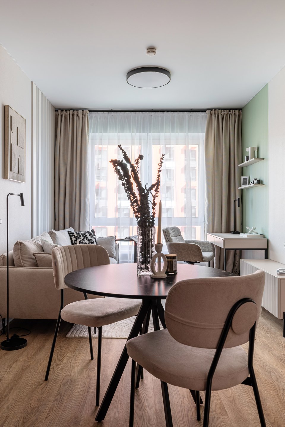 - На фото 2: однушка 60 кв.м, ЖК «Минск-Мир». В кадре диван прямой Льери-1. Дизайнеры: Юлия Поздняк и Светлана Кривицкая; фотограф: Виталина Ворошкевич