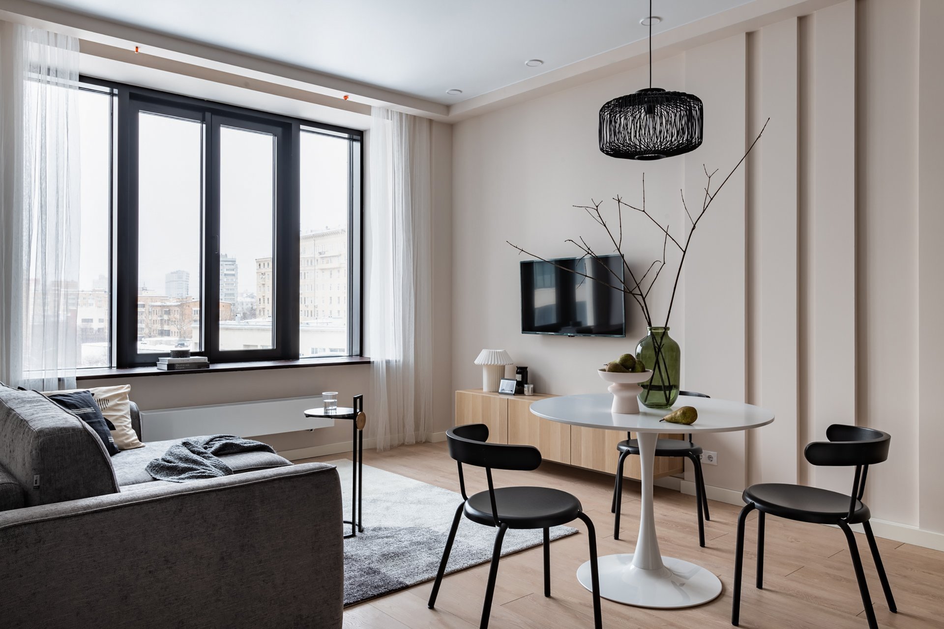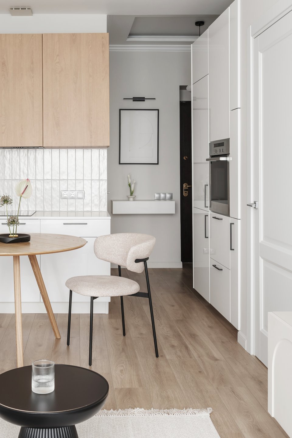 На фото: однушка 51,7 кв.м, ЖК «ВТБ Арена парк». В кадре кухонный стол Тюлип от divan.ru. Дизайнер: Анна Мальцева; стилист: Евгения Мельникова; фотограф: Евгений Гнесин