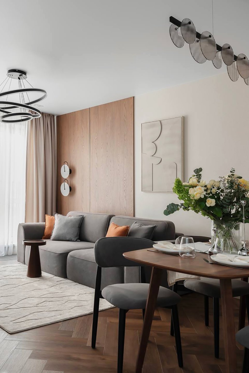 В стиле контемпорари оно выполняет роль идеального фона и строится по принципу «спокойная база + один-два акцента».