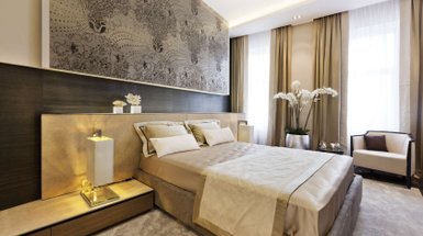 - Оформление в «дорогих» стилях. Ар-деко, модерн, ампир, разновидности классики. Характерны позолоченные вставки, мебель из массива. Нередко присутствует лепнина, устанавливают колонны. Используются массивные люстры. Идеи хороши для тех, кто хочет, чтобы помещение было похожим на кабинет в привычном понимании этого слова. Пожалуй, самый затратный вариант оформления.