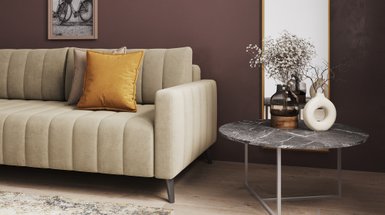 Если в комнате есть пустой угол, его можно заполнить картинами с помощью угловой развески. В поиске удачной композиции вам как раз поможет совет с бумажными листами.