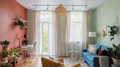 — Квартира приобретена на вторичном рынке и располагается в панельном доме. Главные пожелания заказчиков заключались в том, чтобы все три комнаты (две детские и спальня родителей) были раздельные. Дополнительным пожеланием супруги стало использование сочной и насыщенной цветовой палитры. Я выбрала глубокий зеленый и пыльно-розовый оттенок.