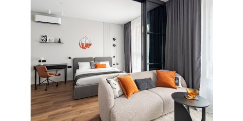 «Заказчик — молодой человек, творческий и креативный гейм-дизайнер. Много времени работает дома за компьютером. Он точно знал, что хотел видеть в своем интерьере — светлую базу и яркие акценты, — рассказывает дизайнер. — Я предложила концепцию: светлые стены, добавить желтый и черный цвета по классической пропорции 70 / 20 / 10. Черный цвет минимально, для создания определенного ритма в отделке дверных коробок, светильниках, ножках мебели, принте на постере. Хотелось в интерьере отразить характер молодого человека и его образ жизни, чтобы было комфортно не только с точки зрения эргономики, но и эмоционально».