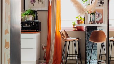 Выбирайте мебель с сочетающимися между собой формами: например, острые грани столов в стиле хайтек на фоне округлой спинки дивана или кресла тоже станут мягче. Не бойтесь миксовать стили, которые кажутся полными противоположностями — лаконичный прямоугольный комод на самом деле составит отличную пару креслу в классическом стиле.