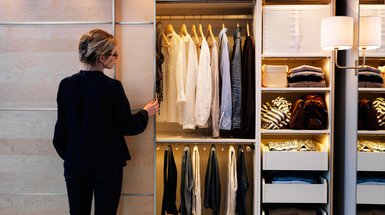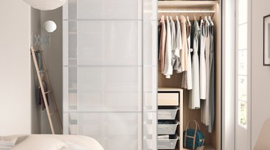 Это важно учитывать не только при покупке готовой мебели: при индивидуальном заказе откажитесь от монолитной конструкции в пользу мобильной, модульной, сборно-разборной. Например, тумба внизу и полки или шкафчик вверху. Легкий стеллаж также можно дополнить дверцами.