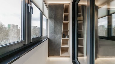 В малогабаритной квартире отдельно стоящие шкафы с полками, кронштейнами и ящиками используют в качестве перегородки для быстрого зонирования помещения без серьезной перепланировки.