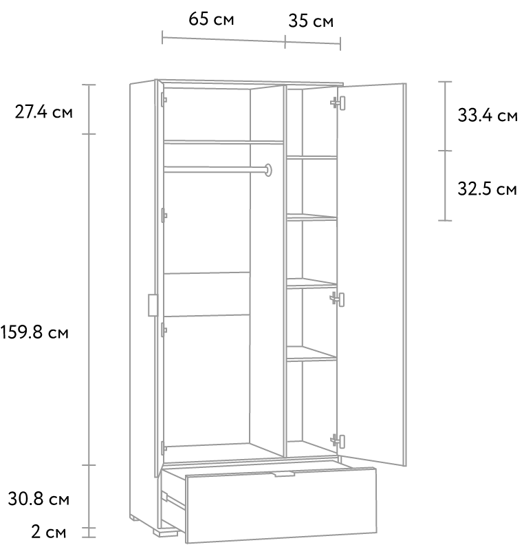 Добавляйте дополнительные полки, штанги и ящики в ваш шкаф.