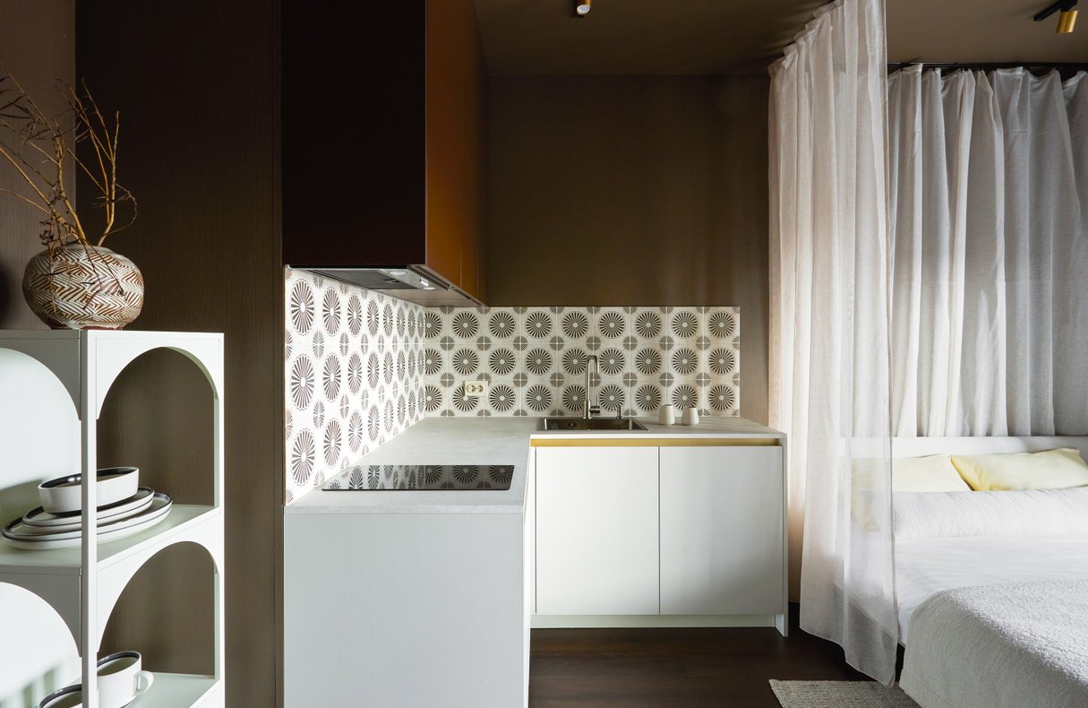 Мини-студия 24 кв.м: нетривиальный интерьер в шоколадных тонах