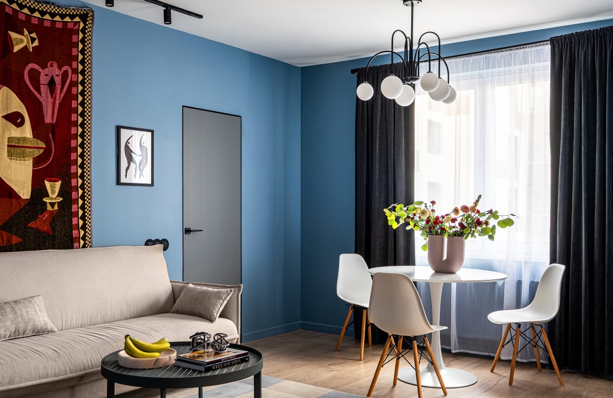 75 кв.м: минимализм с акцентами индиго и оливы в бывшей коммуналке
