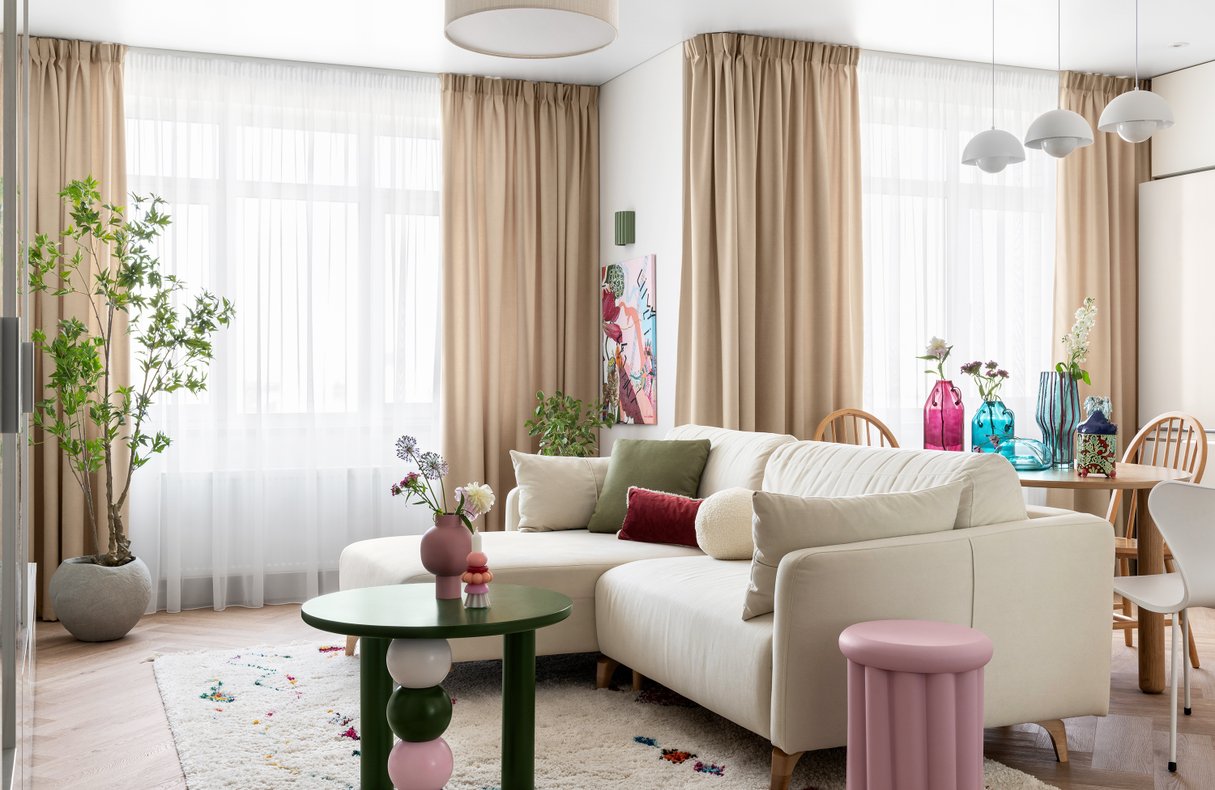Дофаминовый интерьер: гармония сканди и мемфиса в евротрешке 82 кв.м