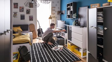 Независимо от выбранного стиля, мебель должна отвечать потребностям растущего организма подростка и быть комфортной. Стул или компьютерное кресло выбирают в соответствии с ростом. Полки вешают так, чтобы дотягиваться до их содержимого без проблем.