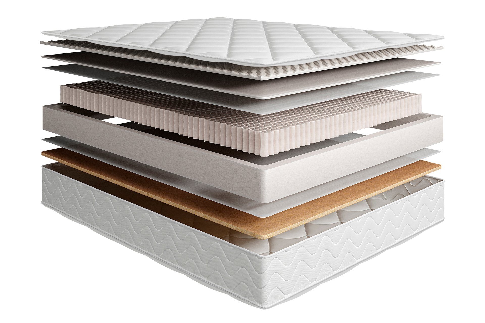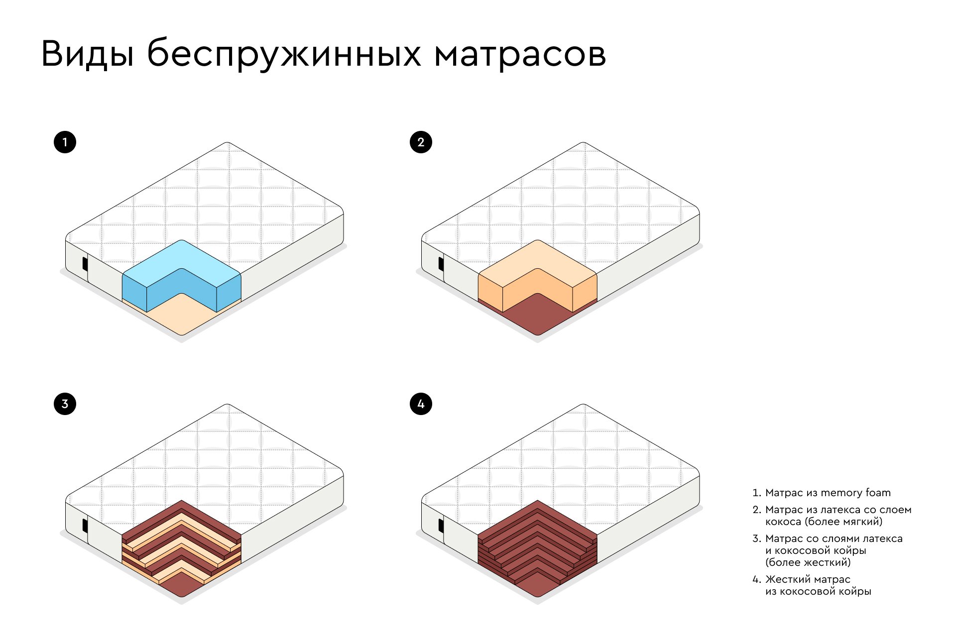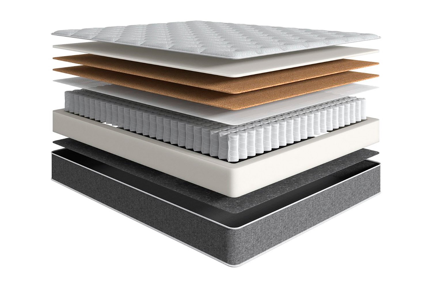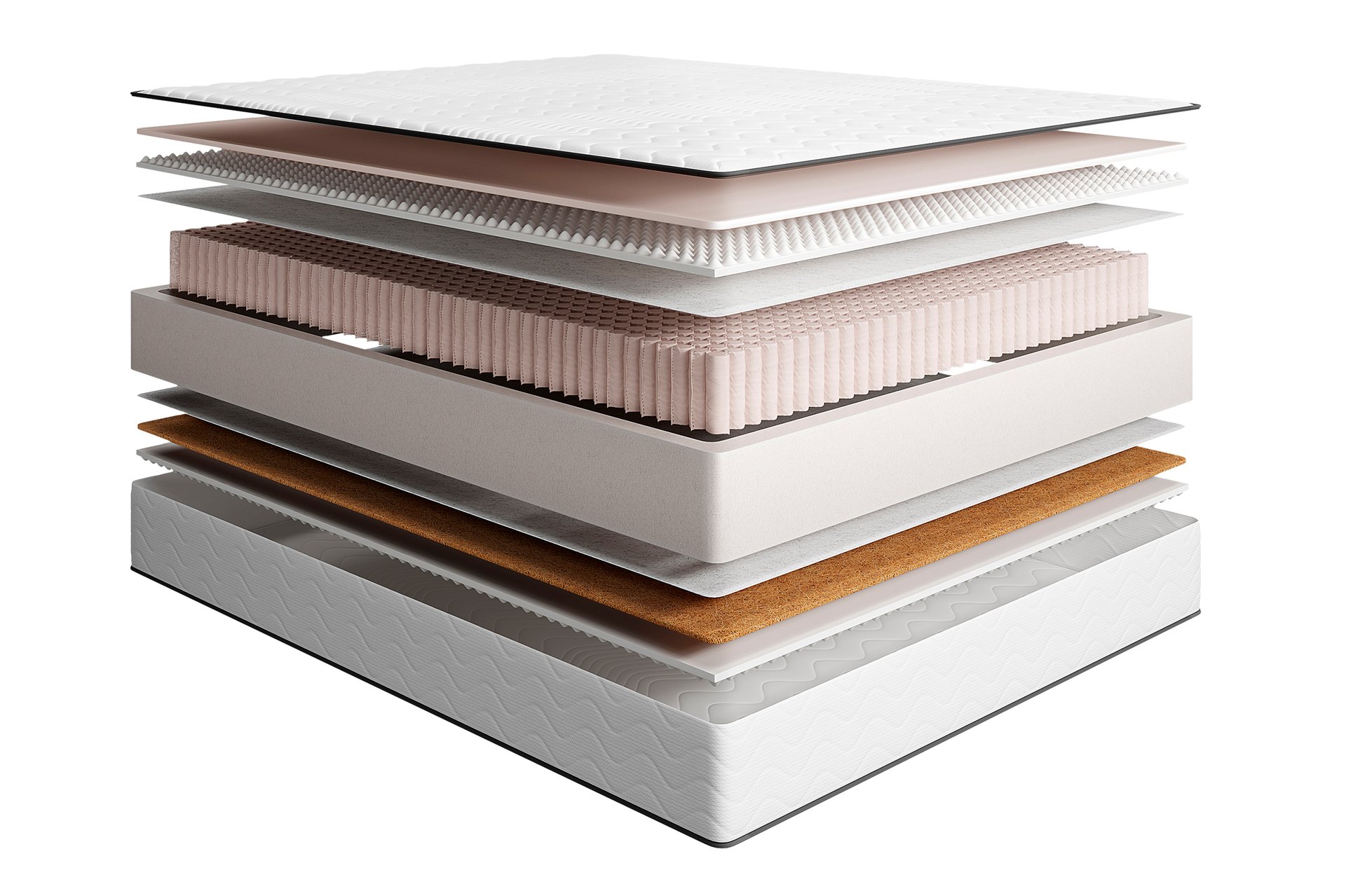 Это многослойный пирог из различных наполнителей. Они бесшумны и часто более долговечны, чем пружинные аналоги. Беспружинные конструкции отлично подходят аллергикам, так как часто производятся из гипоаллергенных наполнителей. К ним относятся все вышеперечисленные материалы: латекс, кокос, ППУ.