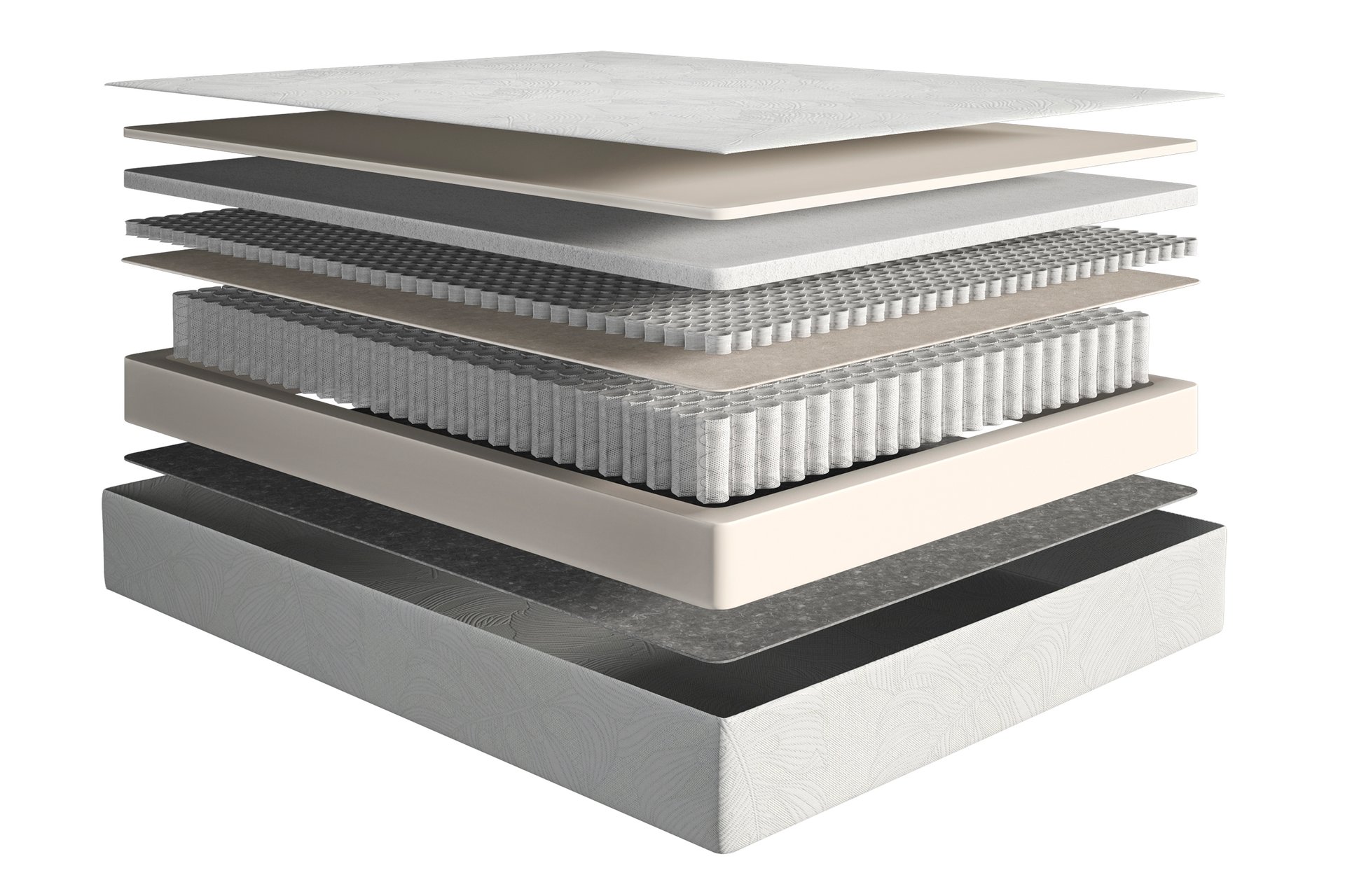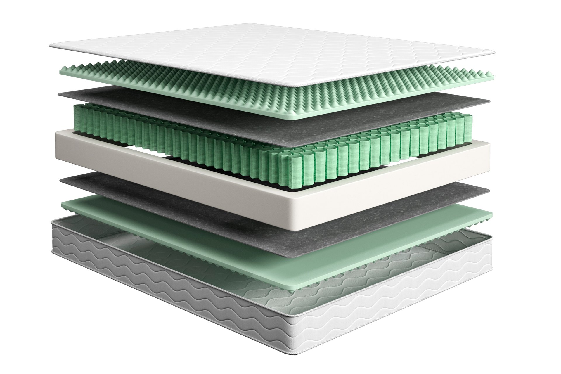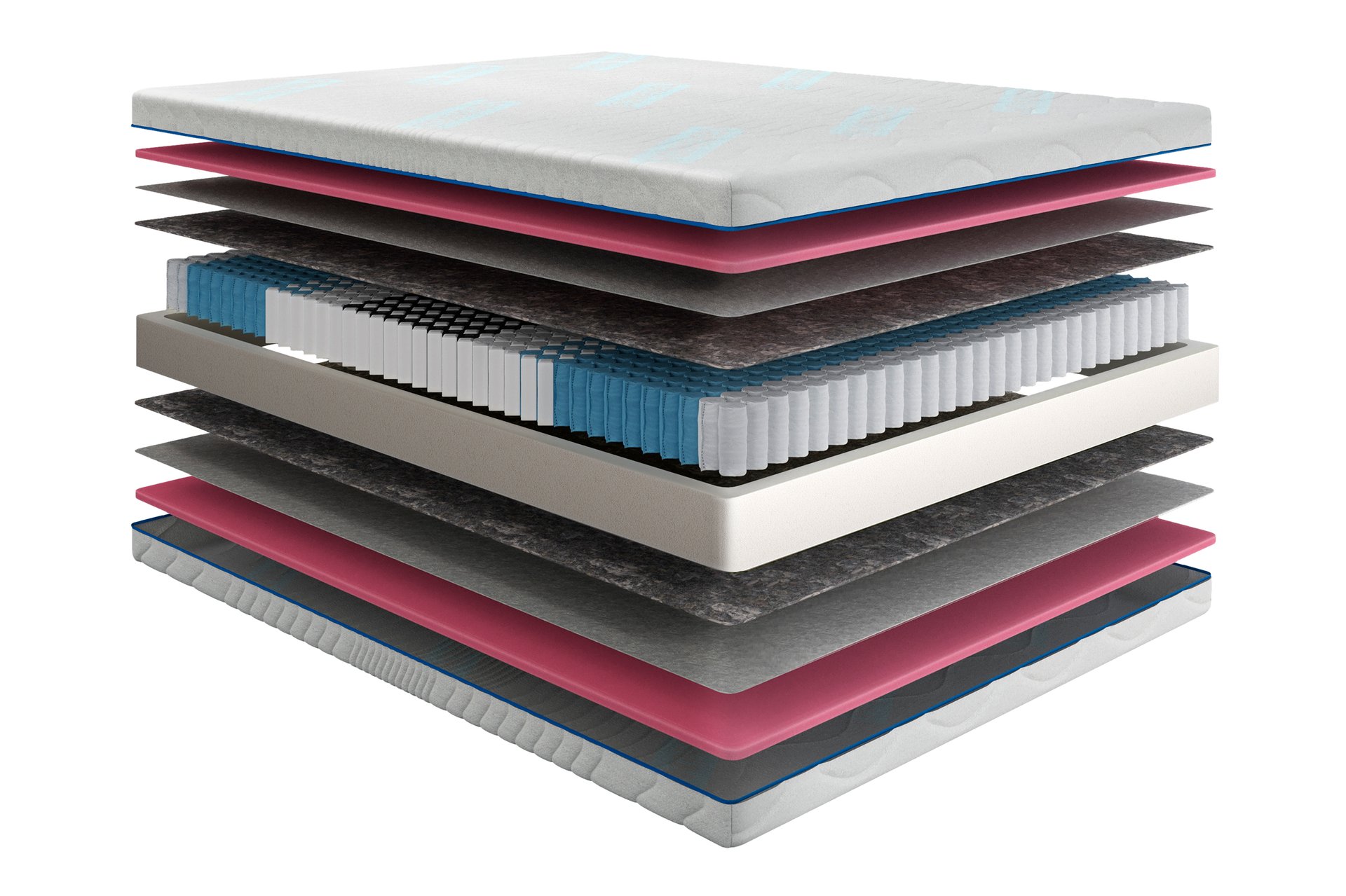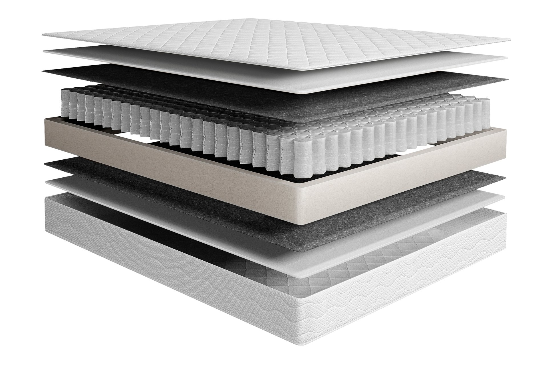 Это многослойный пирог из различных наполнителей. Они бесшумны и часто более долговечны, чем пружинные аналоги. Беспружинные конструкции отлично подходят аллергикам, так как часто производятся из гипоаллергенных наполнителей. К ним относятся все вышеперечисленные материалы: латекс, кокос, ППУ.