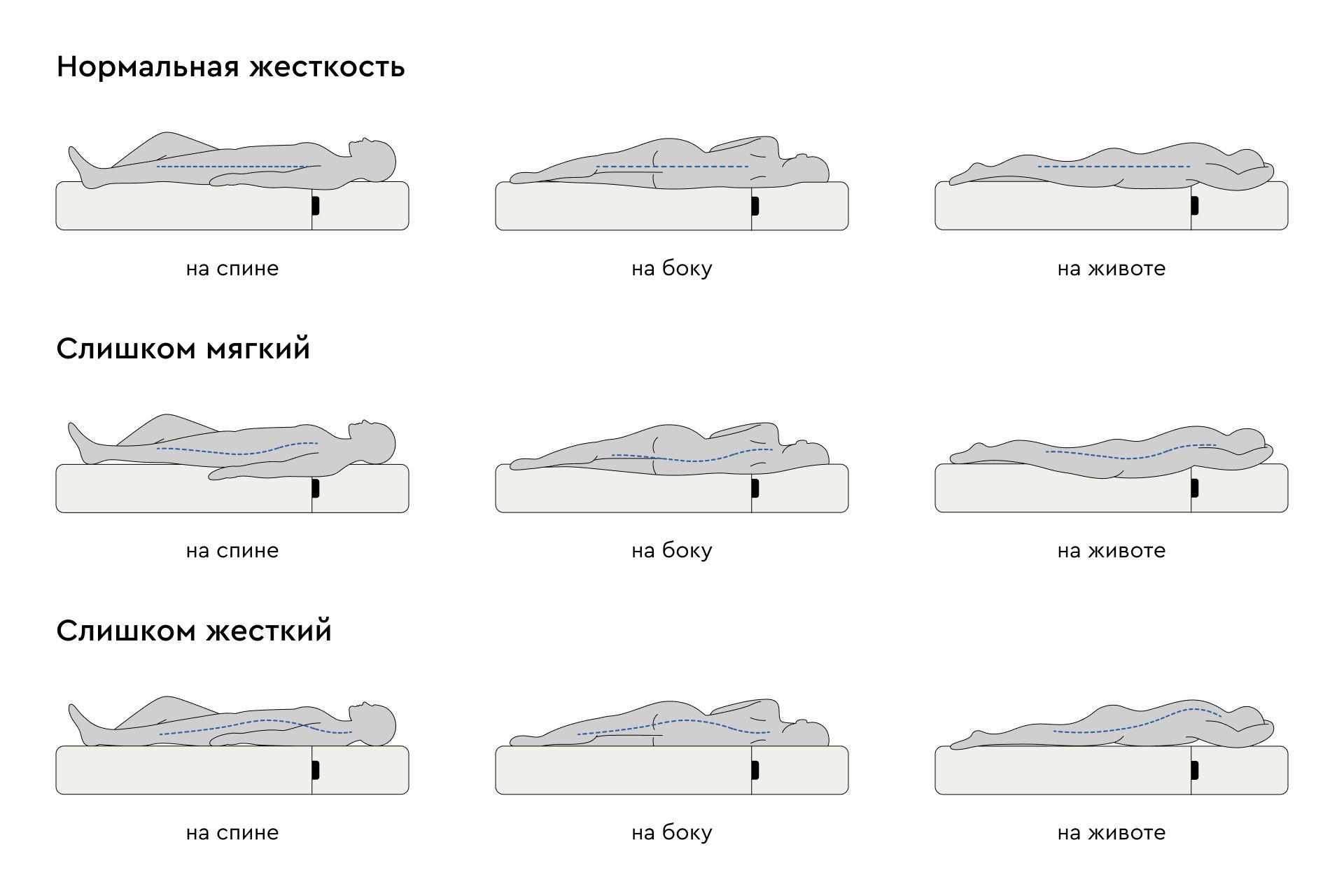 - При проблемах в шейном и грудном отделе важнее анатомический эффект, который обеспечивают мягкие слои (мемори, латекс) поверх жесткого основания.