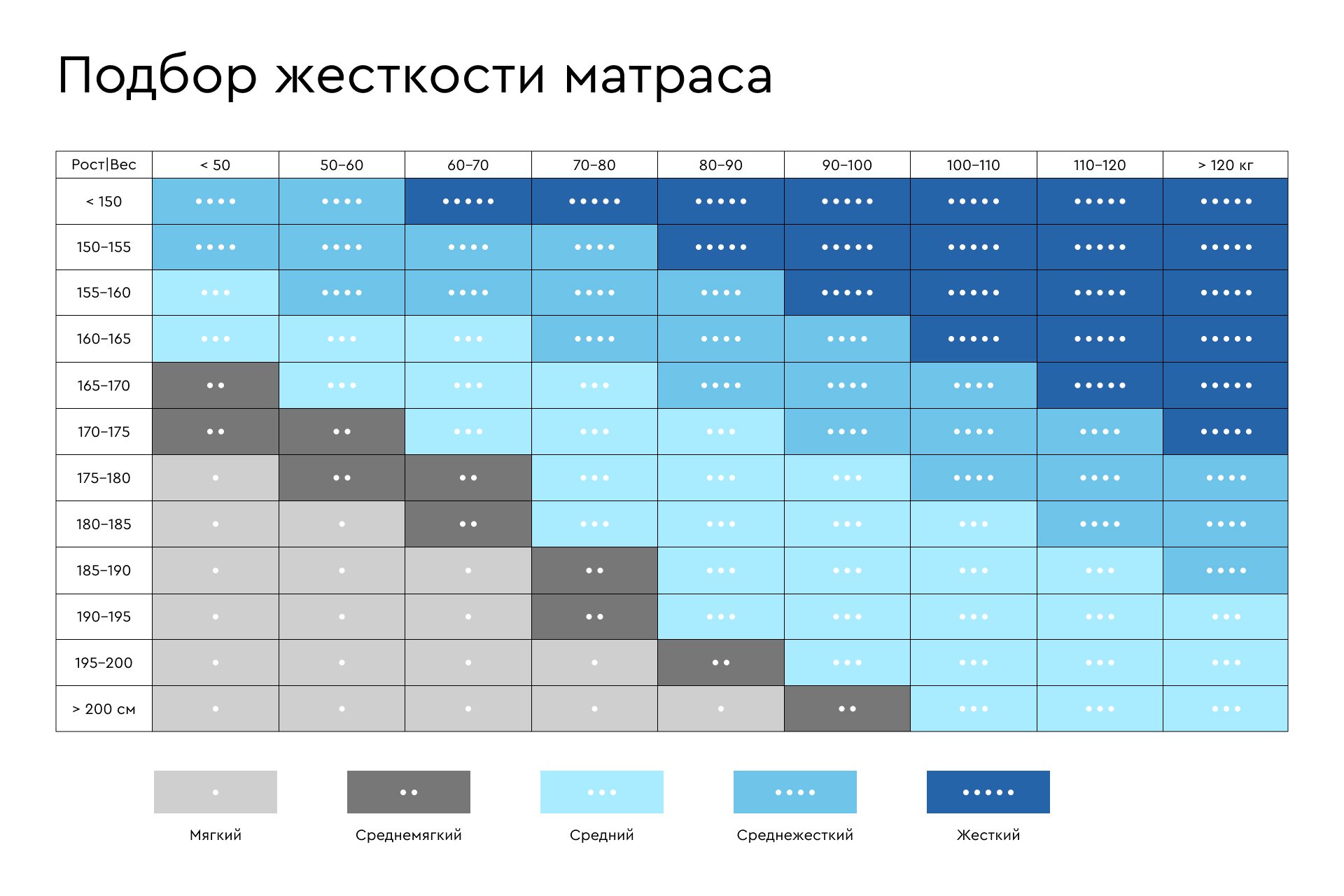Эти два ключевых параметра напрямую влияют на оптимальный уровень жесткости спального места. Производители качественных изделий всегда указывают рекомендуемый вес пользователя.
