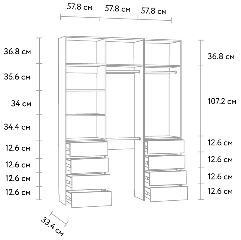 Гардероб модулі Хелен-3.8-180-240 Сұр
