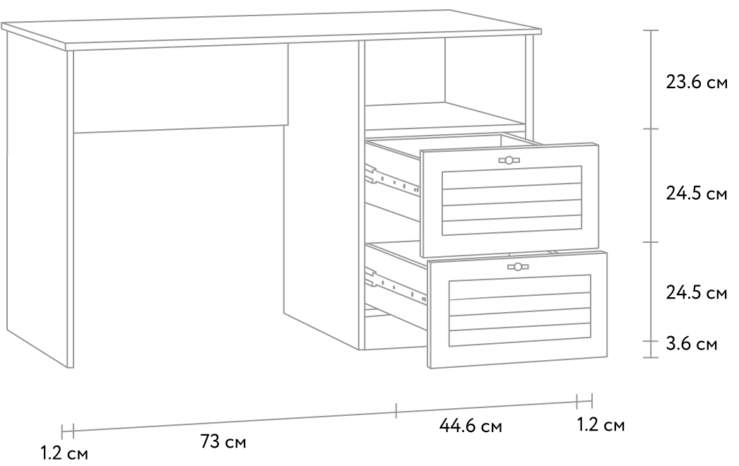 Өнімде әртүрлі материалдардан жасалған бөлшектер қолданылады: LDSP және MDF. Көлеңкедегі ақ түстің дәл сәйкестігі мүмкін емес.