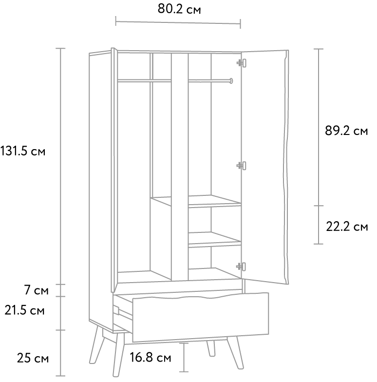 "Хайдер" топсалы шкафы-дизайндағы функционалдылық пен батылдықтың көрінісі. Қара корпус жеңіл ағаш панельдерге қарама-қайшы болған кезде Модель біркелкі емес сызықтармен және ерекше түс схемасымен көзді тартады. Бұл сериядағы топсалы шкаф заманауи интерьері бар жатын бөлме үшін тамаша шешім болады.