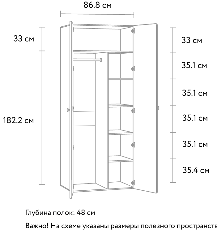 Топсалы шкаф Монсон 2-90х222 Белый